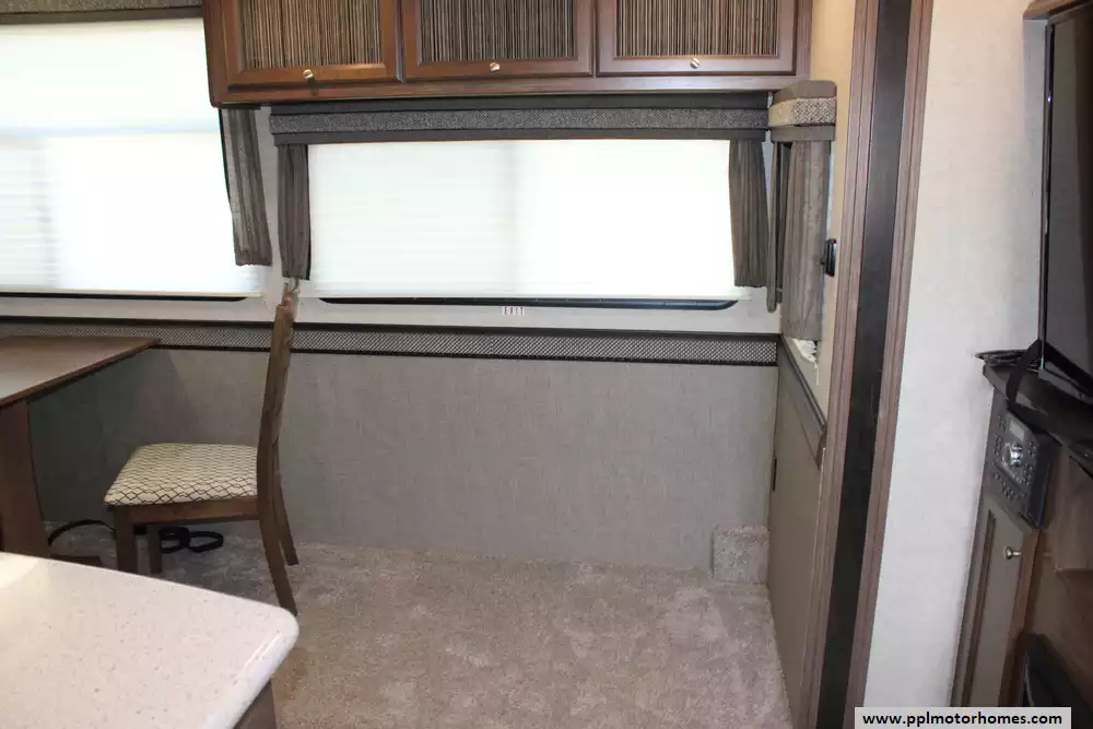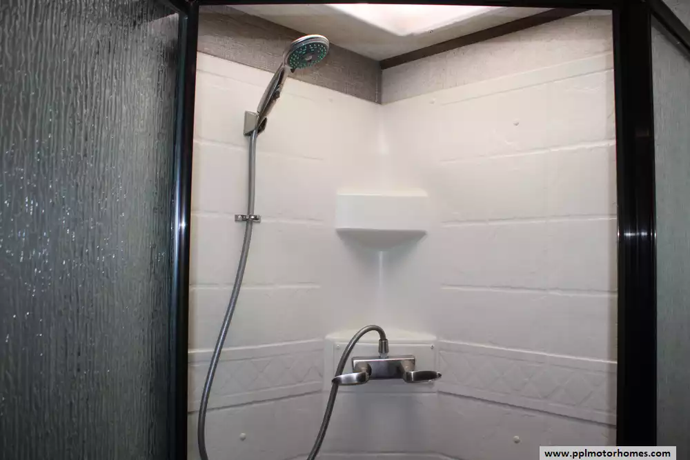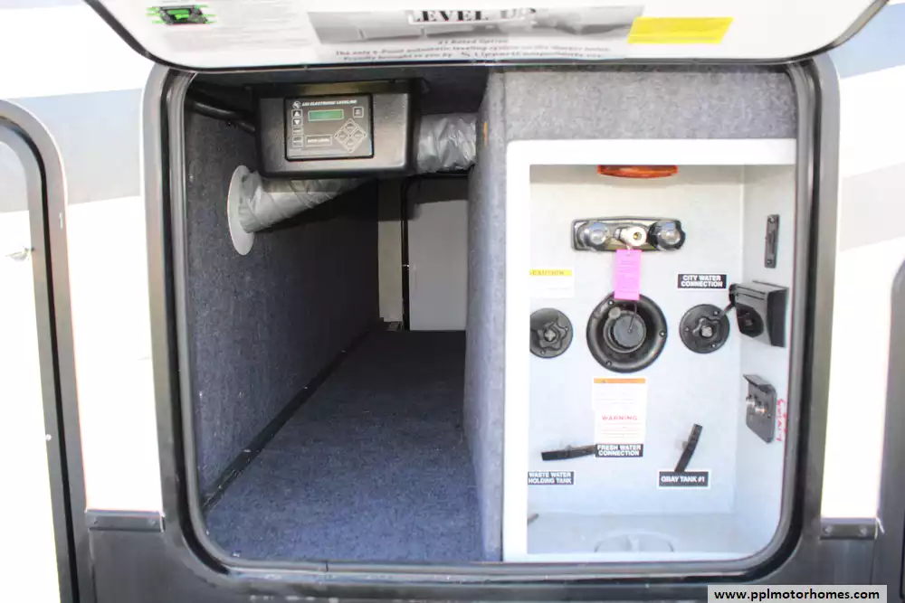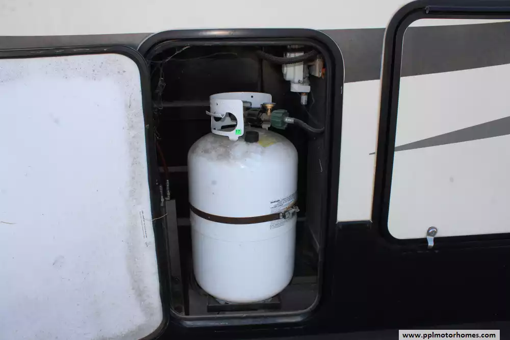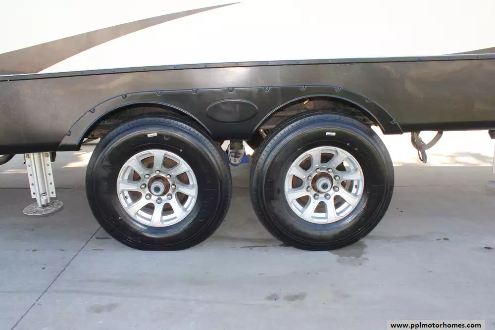 Specs: Length: 34.7 ft., Width: 8 ft., Height: 13.17 ft., Total Fresh Water Tank Capacity: 47 gal., Total Gray Water Tank Capacity: 120 gal., Total Black Water Tank Capacity: 80 gal., Total Number of Propane Tanks: 2, Total Propane Tank Capacity: 60 lbs.