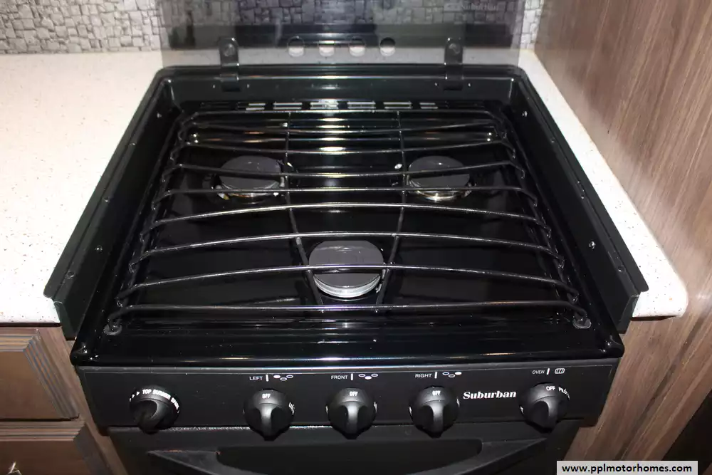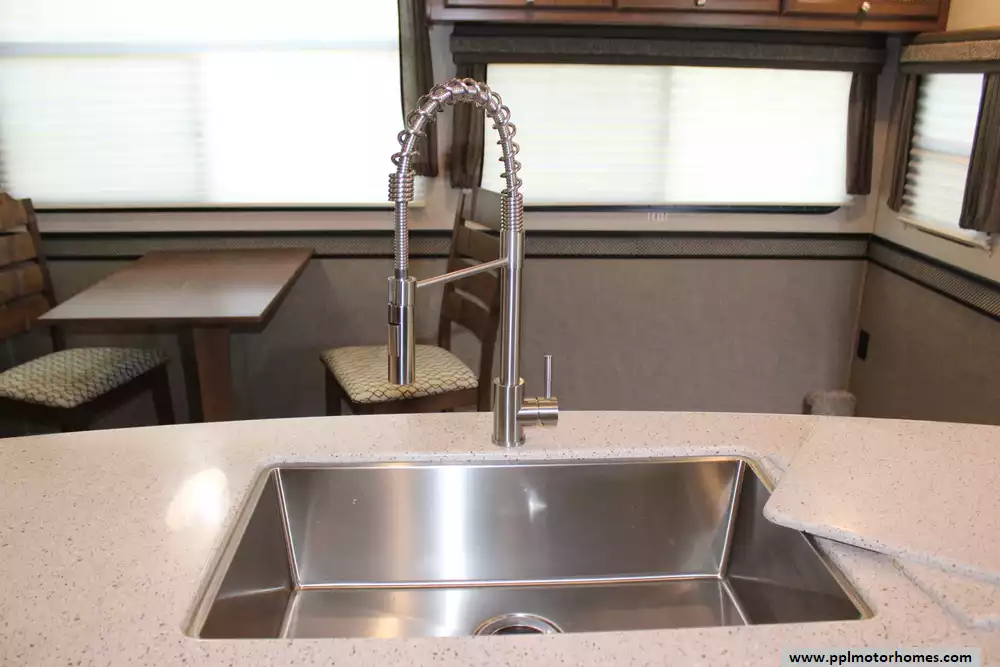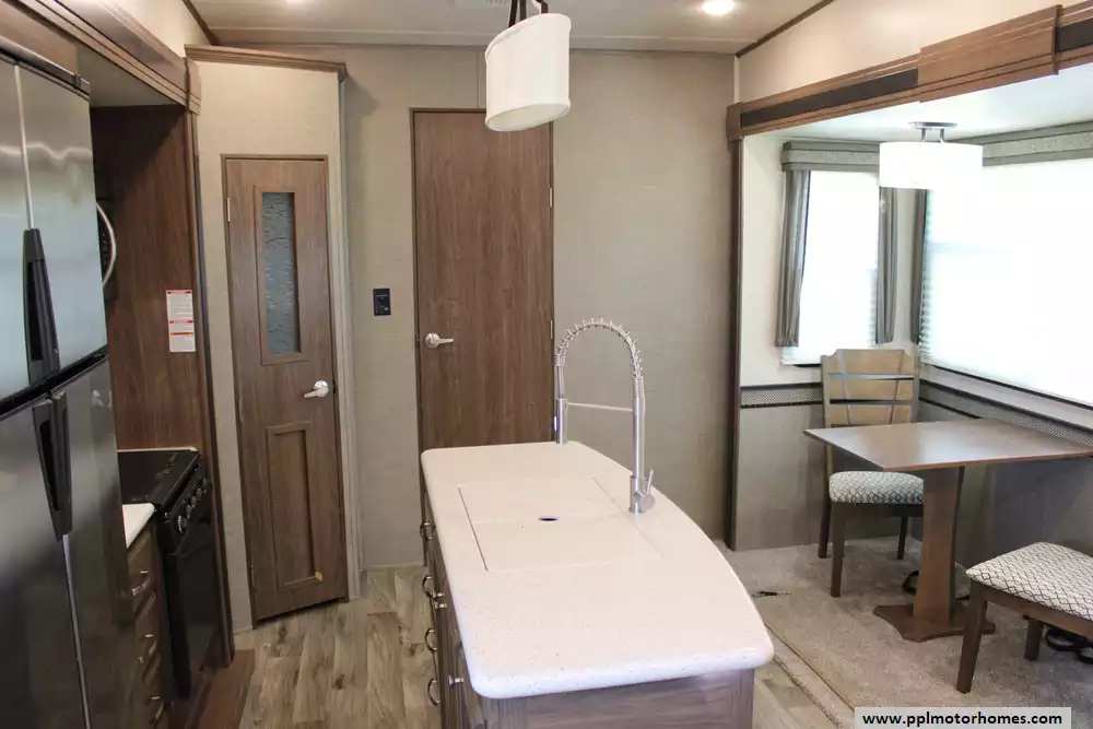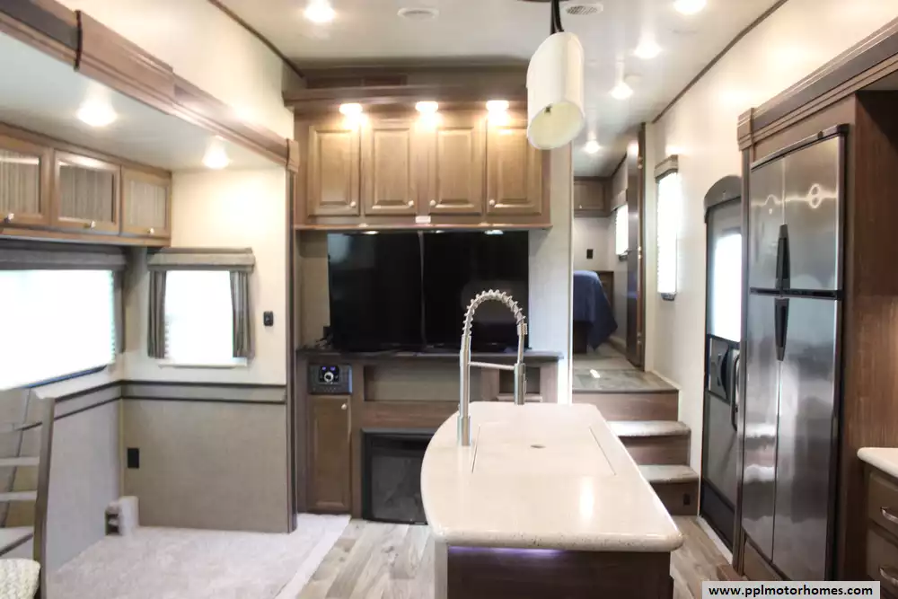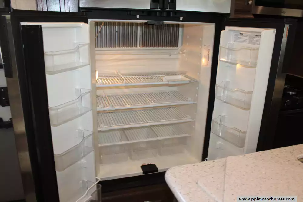 Specs: Length: 34.7 ft., Width: 8 ft., Height: 13.17 ft., Total Fresh Water Tank Capacity: 47 gal., Total Gray Water Tank Capacity: 120 gal., Total Black Water Tank Capacity: 80 gal., Total Number of Propane Tanks: 2, Total Propane Tank Capacity: 60 lbs.