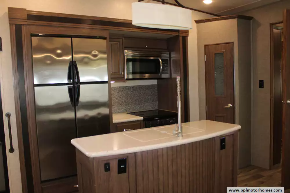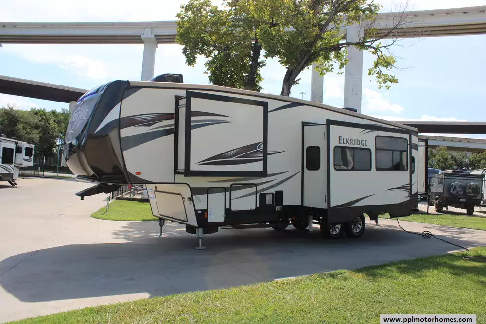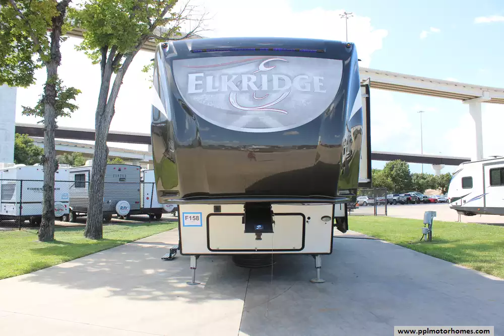 This 2017 Elkridge 33RSR offers a well-appointed setup designed for families or groups who value comfort, space, and craftsmanship. Features Include...3 Slide-outs, 2 Ducted Air Conditioners, 4 Door Gas/110v Dometic Refrigerator, Automatic Main Awning, Outside Speakers, TV, DVD Player, Outside Shower, Fireplace, Microwave, 3 Burner Range, and Oven.
