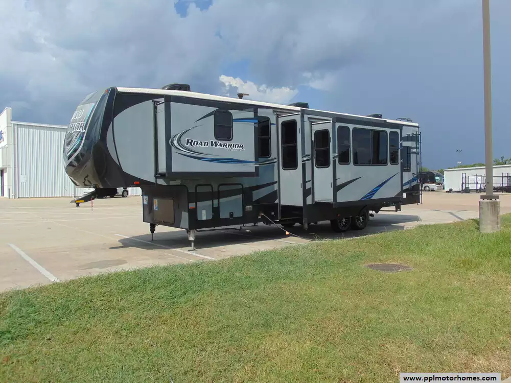 This 2017 Road Warrior 362 is a versatile toy hauler designed for adventure enthusiasts who want to bring their favorite recreational vehicles along while enjoying the comforts of home on the road.Combining rugged utility with upscale living spaces,this model stands out for its functionality and style.Features Include...4 Slide-outs, Onan Gas Generator, 3 Ducted Air Conditioners, Refrigerator, Automatic Main Awning, Heated Tanks, Outside Speakers, Outside Shower,Floating Patio,Filling Station,Microwave,2 Burner Range,and Oven.This toy hauler is designed to provide a perfect blend of adventure and luxury, making it an ideal choice for active travelers.