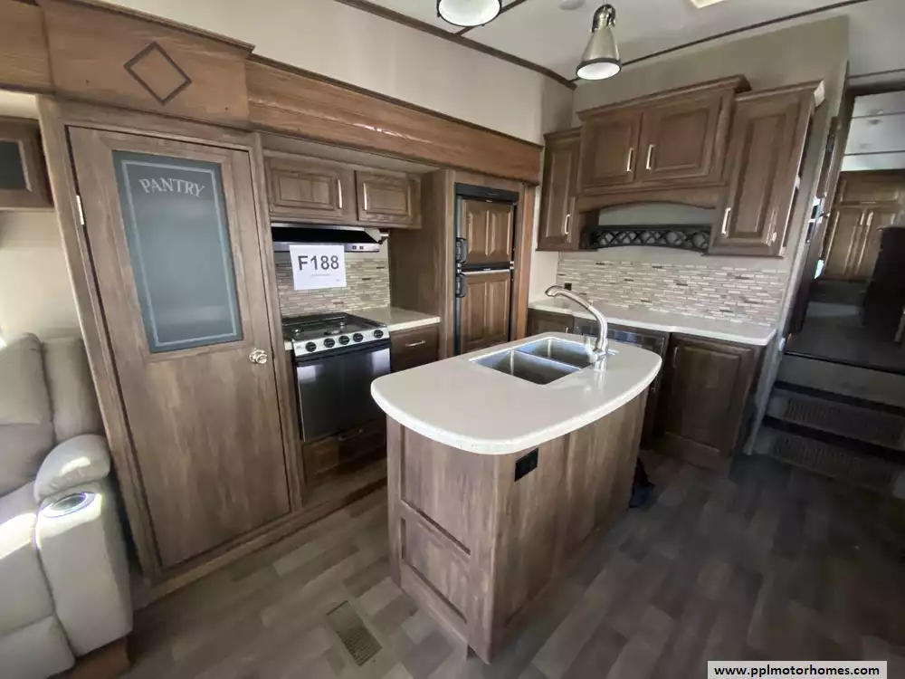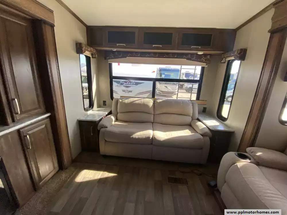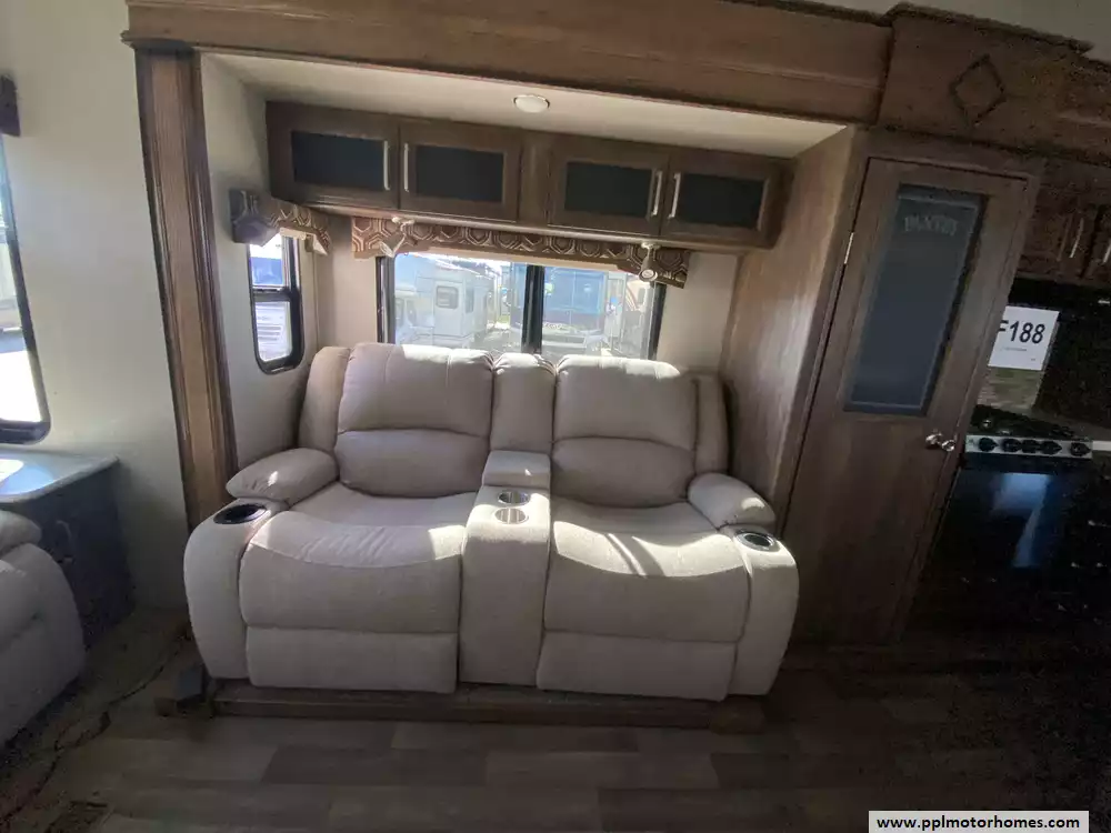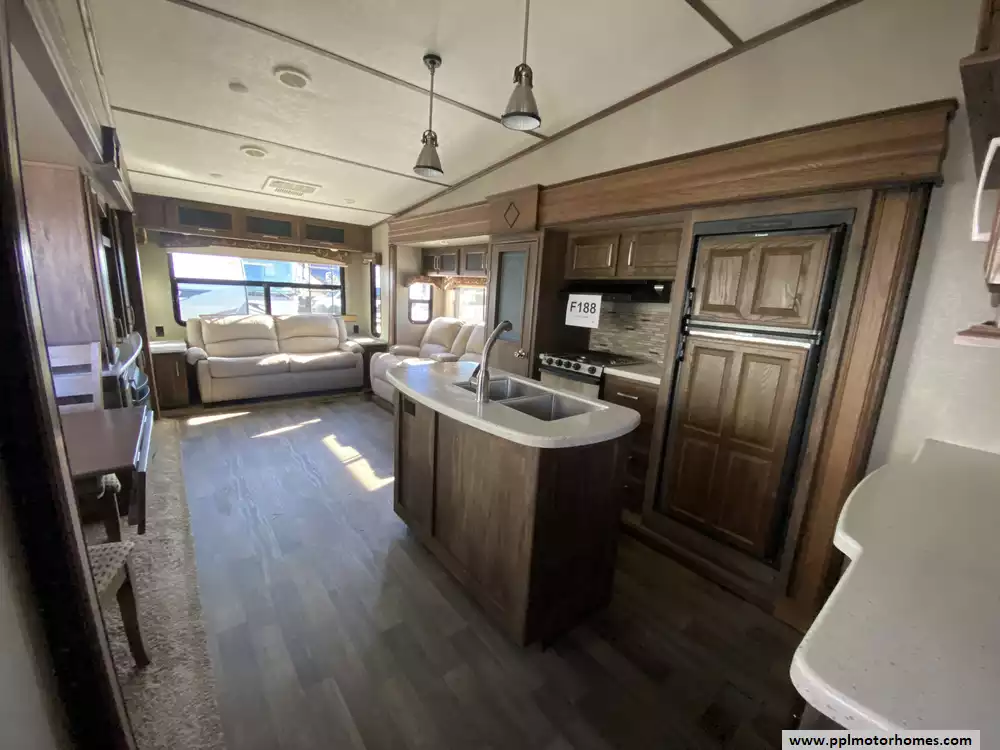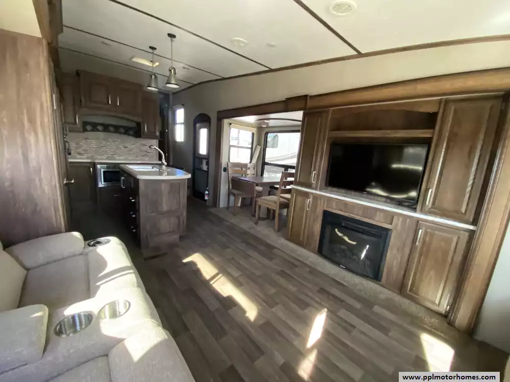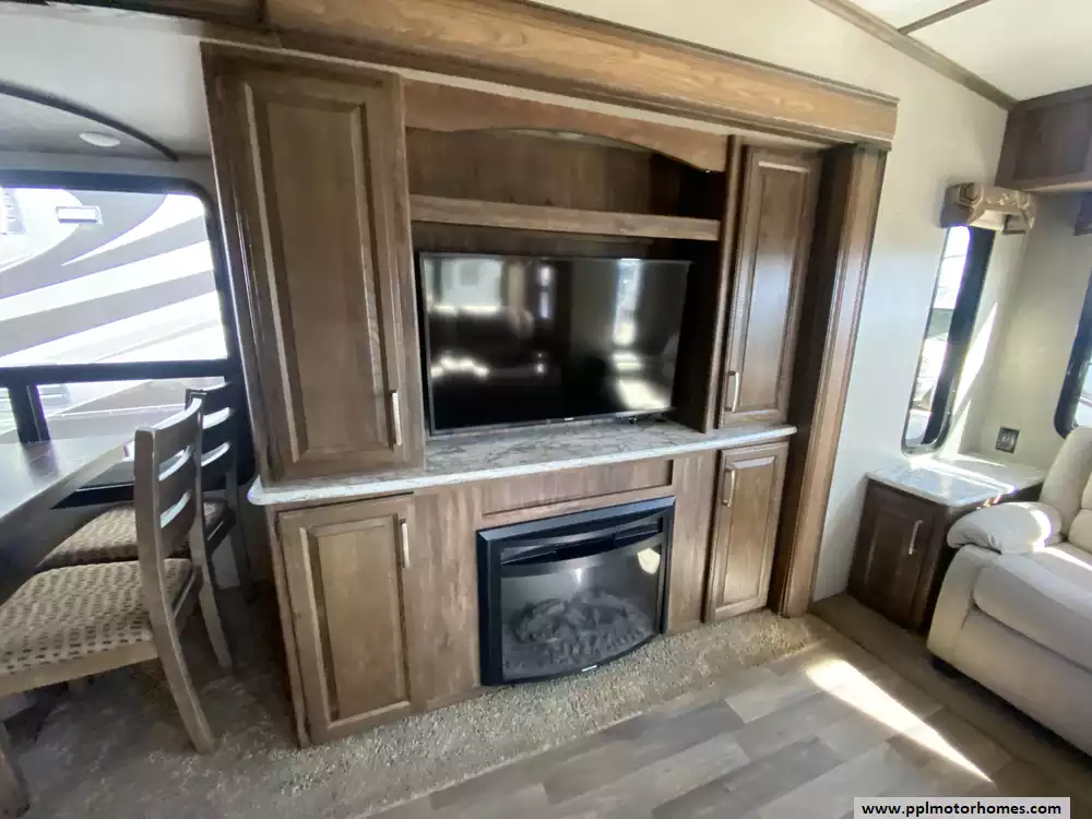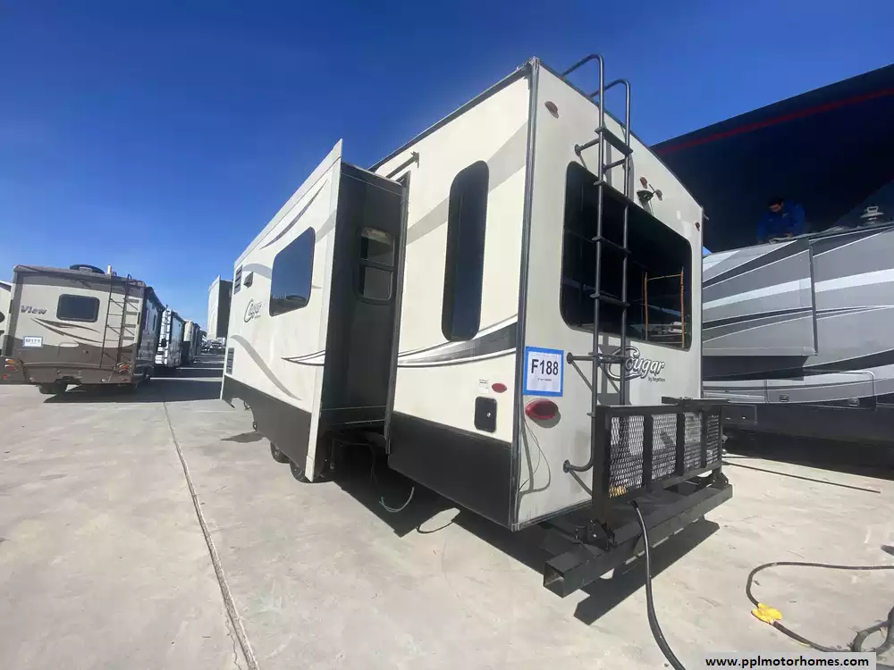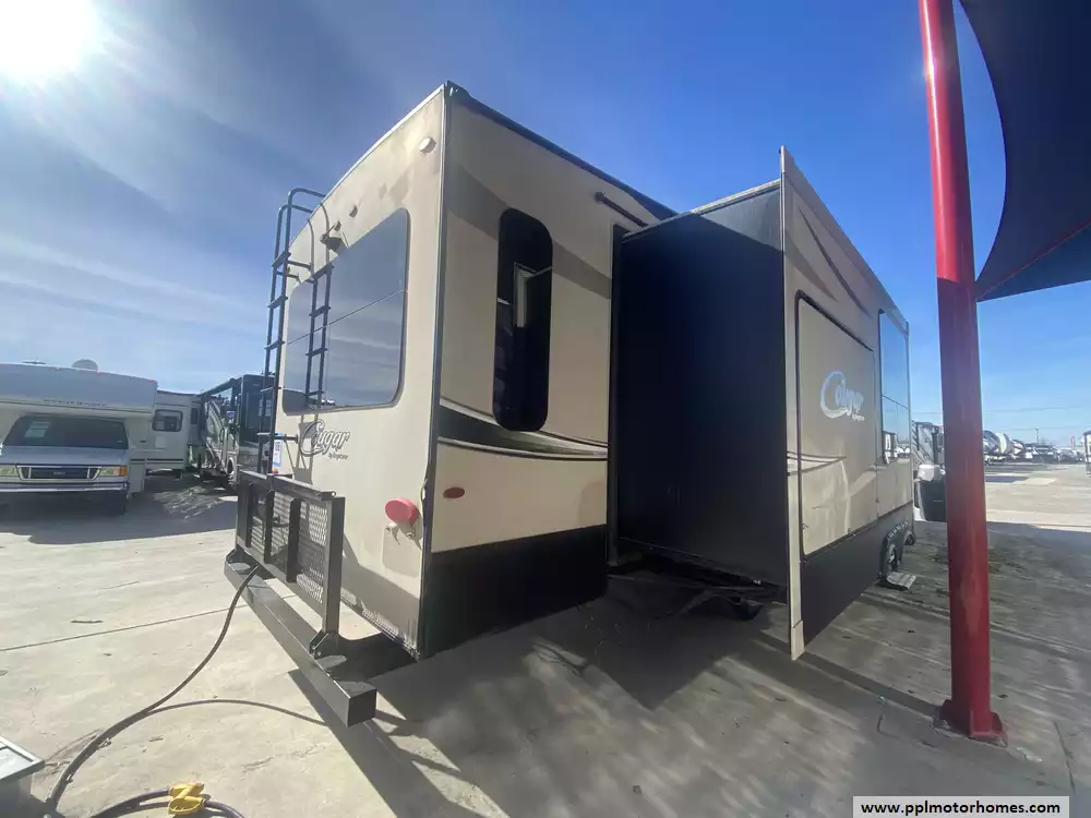 This 2017 Cougar by Keystone 327RLK has a Hydraulic Landing Gear, 3 Slide-outs, 1 Non-Ducted And 1 Ducted Air Conditioner, Double Door Gas/110v Dometic Refrigerator, Washer/Dryer Connections, Outside Speakers, 2 TVs, DVD Player, Outdoor Kitchen, Outside Shower, Fireplace, Microwave, 3 Burner Range, Oven