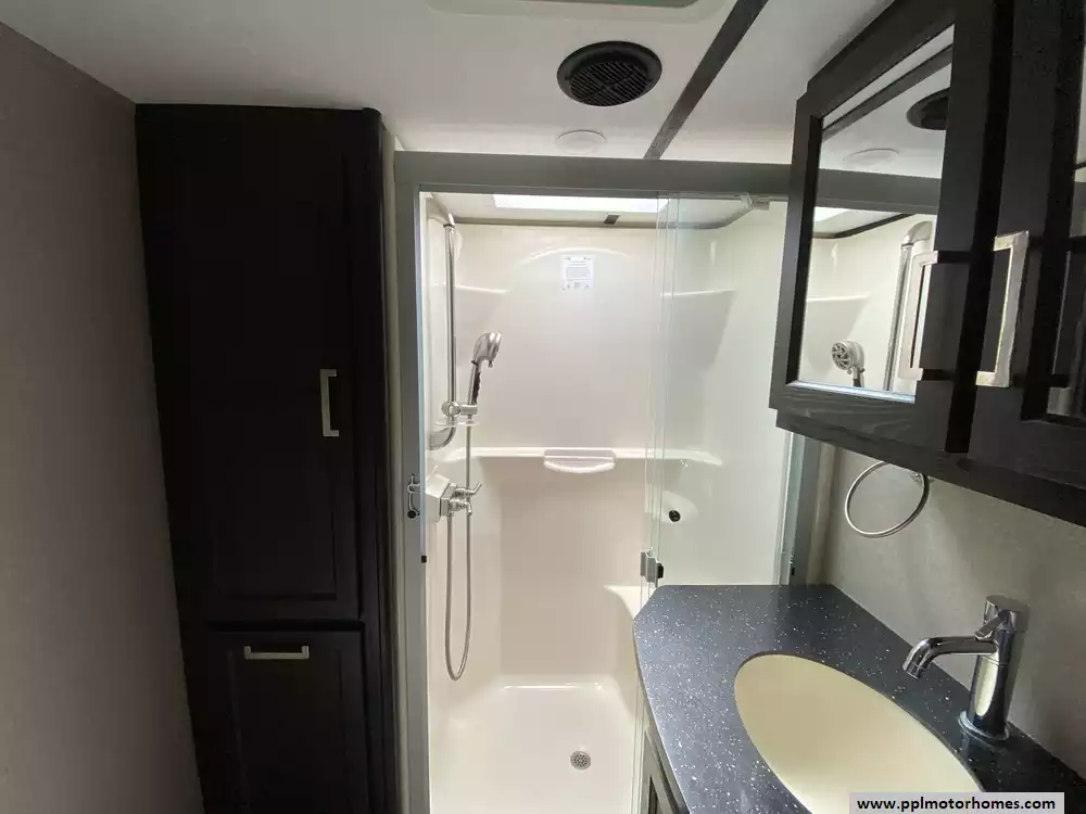 (Floor plan is NOT drawn to scale. Length of vehicle is approximate. Buyer is responsible for verifying actual length. PPL Motor Homes compiled this list of features, specifications, equipment and options as a guide. No representation or warranties, either express or implied, are made as to the accuracy of the information herein. Please verify for yourself all items listed before purchase.)