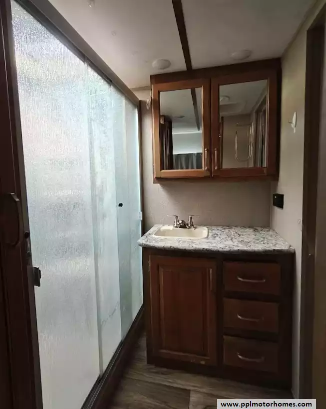 (Floor plan is NOT drawn to scale. Length of vehicle is approximate. Buyer is responsible for verifying actual length. PPL Motor Homes compiled this list of features, specifications, equipment and options as a guide. No representation or warranties, either express or implied, are made as to the accuracy of the information herein. Please verify for yourself all items listed before purchase.)