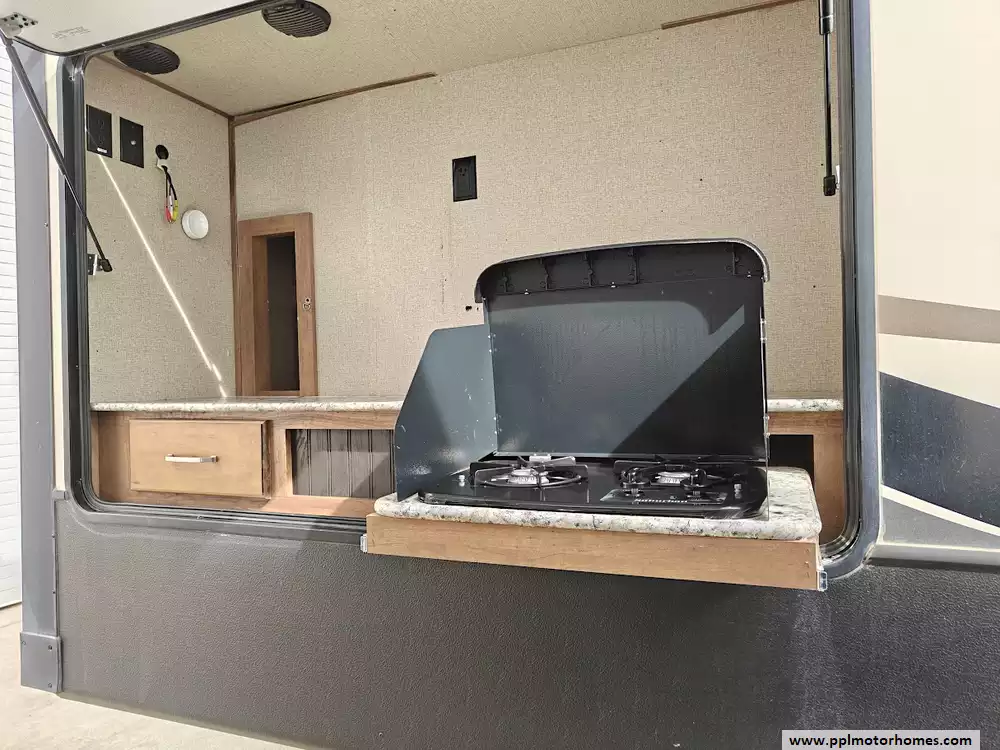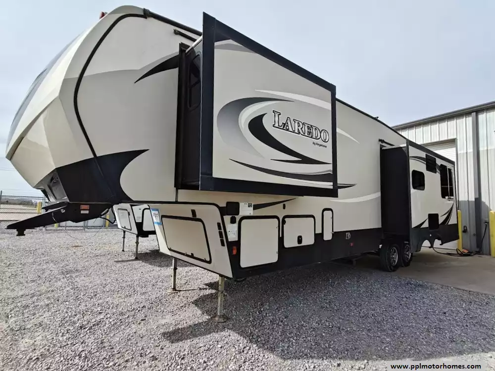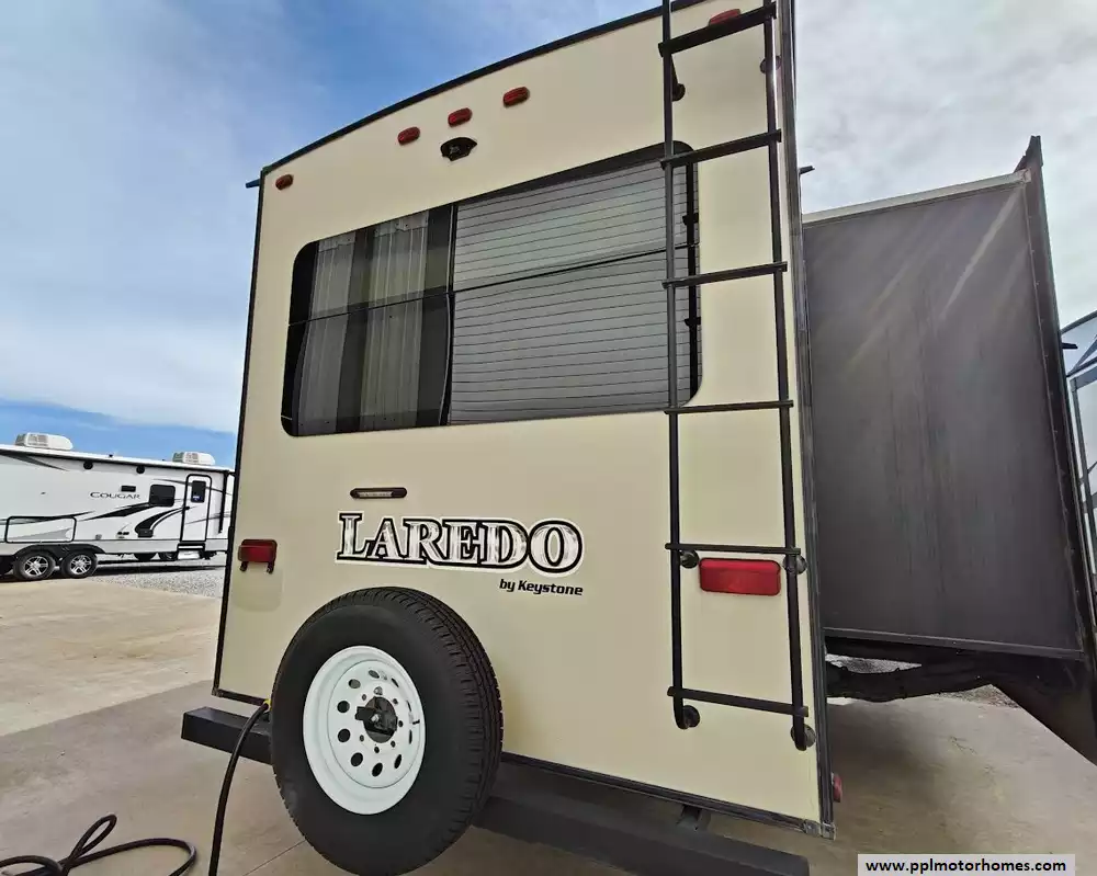 This 2017 Laredo by Keystone 325RL has an Electric Landing Gear, 3 Slide-outs, 2 Ducted Air Conditioners, 4 Door Gas/110v Norcold Refrigerator, Automatic Main Awning, Washer/Dryer Connections, 2 TVs, Outdoor Grill, Outside Shower, Microwave, 3 Burner Range, Oven