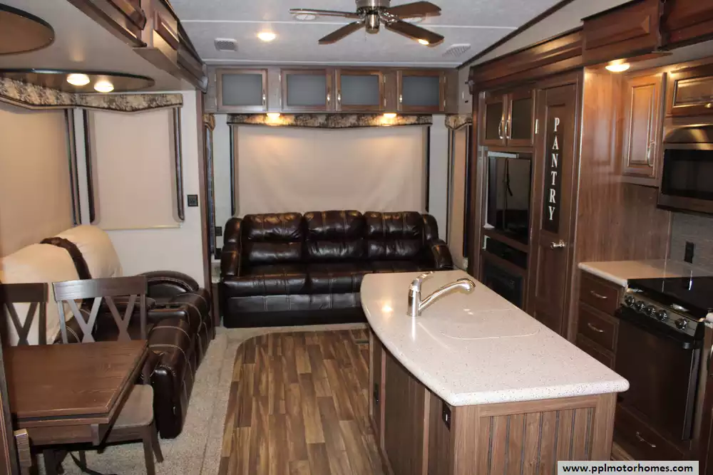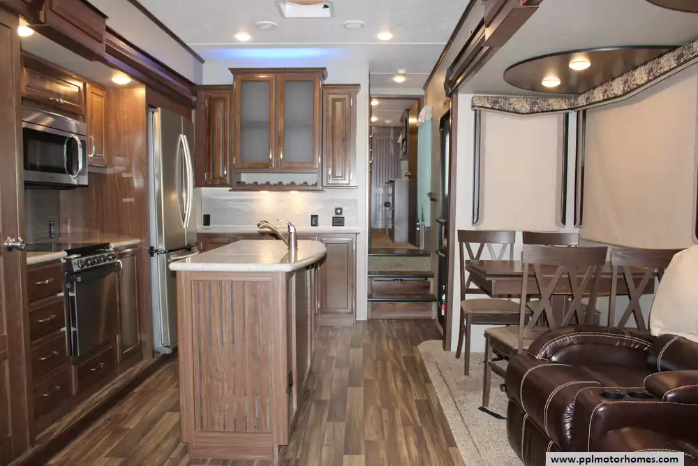This 2017 Montana High Country 353RL is a premium fifth-wheel RV designed for couples and small families seeking comfort and luxury on the road. Features Include...Hydraulic Landing Gear, 3 Slide-outs, 2 Ducted Air Conditioners, Residential Samsung Refrigerator, In-Fridge Ice Maker, Automatic Main Awning And Slide Awning, Outside Entertainment System, 3 TVs, Outside Shower, Fireplace, Convection Microwave, 3 Burner Range, and Oven.The 2017 Keystone Montana High Country 353RL combines spacious living areas with high-quality finishes, making it an excellent choice for those seeking a comfortable and luxurious RV experience.