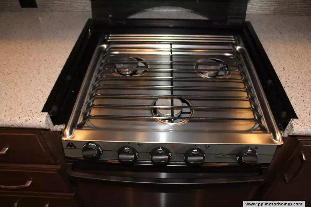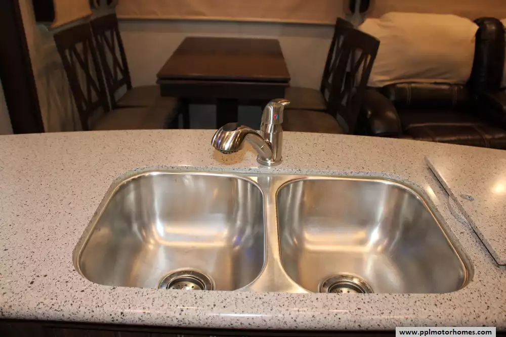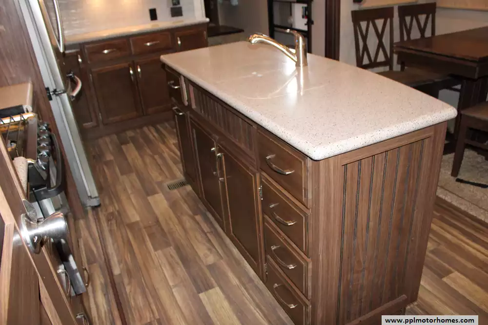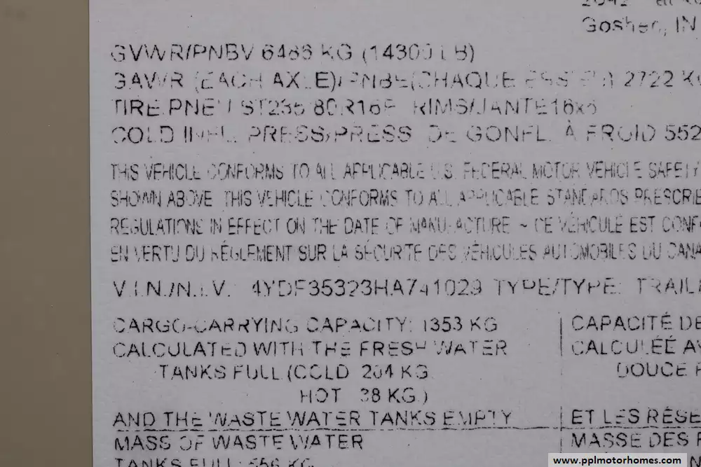 Specs: Length: 36.75 ft., Width: 8 ft., Height: 12.75 ft., Payload Capacity: 3,418 lbs., Total Fresh Water Tank Capacity: 64 gal., Total Gray Water Tank Capacity: 98 gal., Total Black Water Tank Capacity: 49 gal., Number of Propane Tanks: 2, Total Propane Tank Capacity: 60 lbs.