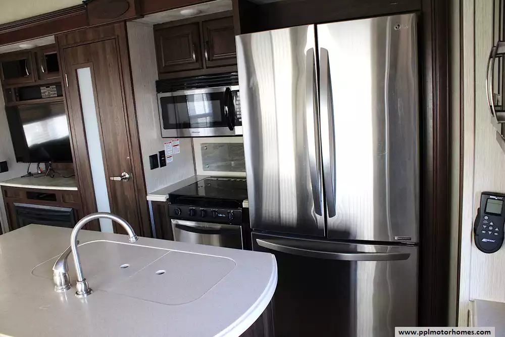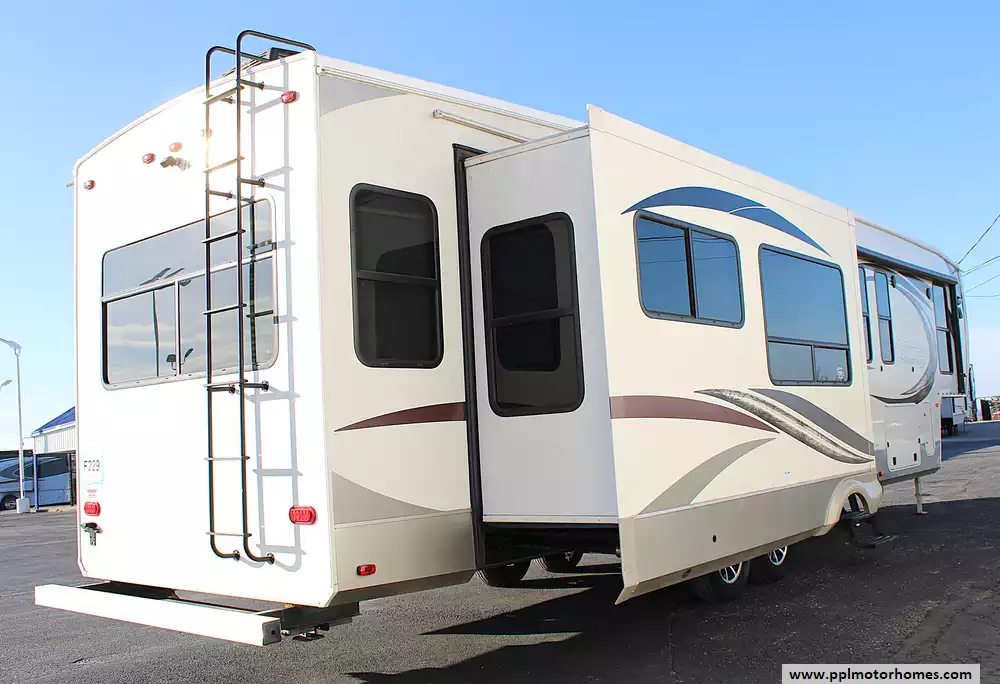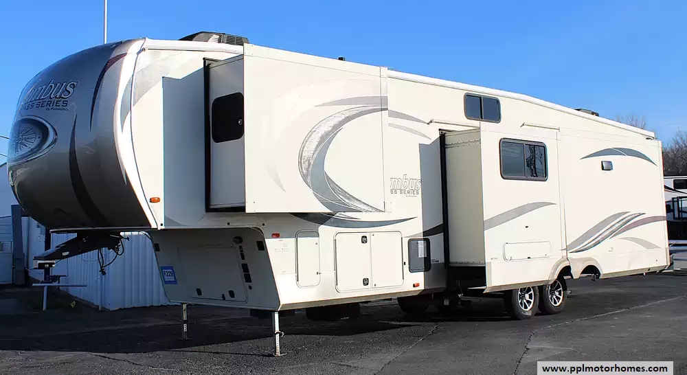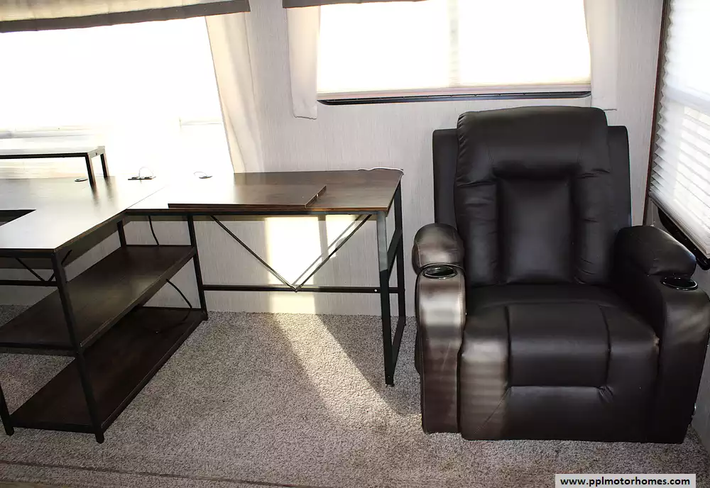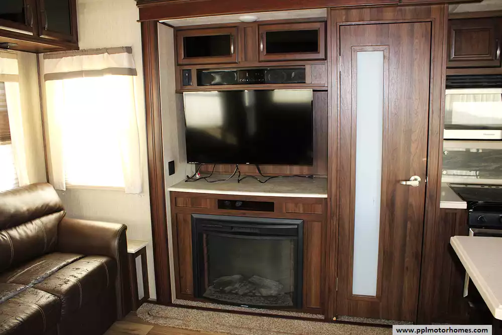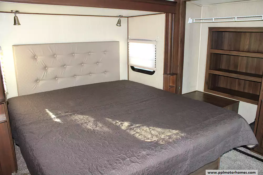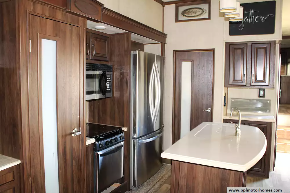 2017 Palomino Columbus 377MBC - a spacious, residential-style fifth wheel designed for families or extended stays. This sought-after mid-bunk floorplan includes a private bunkroom/office, making it ideal for traveling families or remote work. With sleeping accommodations in the front master bedroom, rear living area, and double bunks, this unit can comfortably sleep up to seven people. As a large luxury fifth wheel, it is intended to be towed by a heavy-duty one-ton dually pickup.
