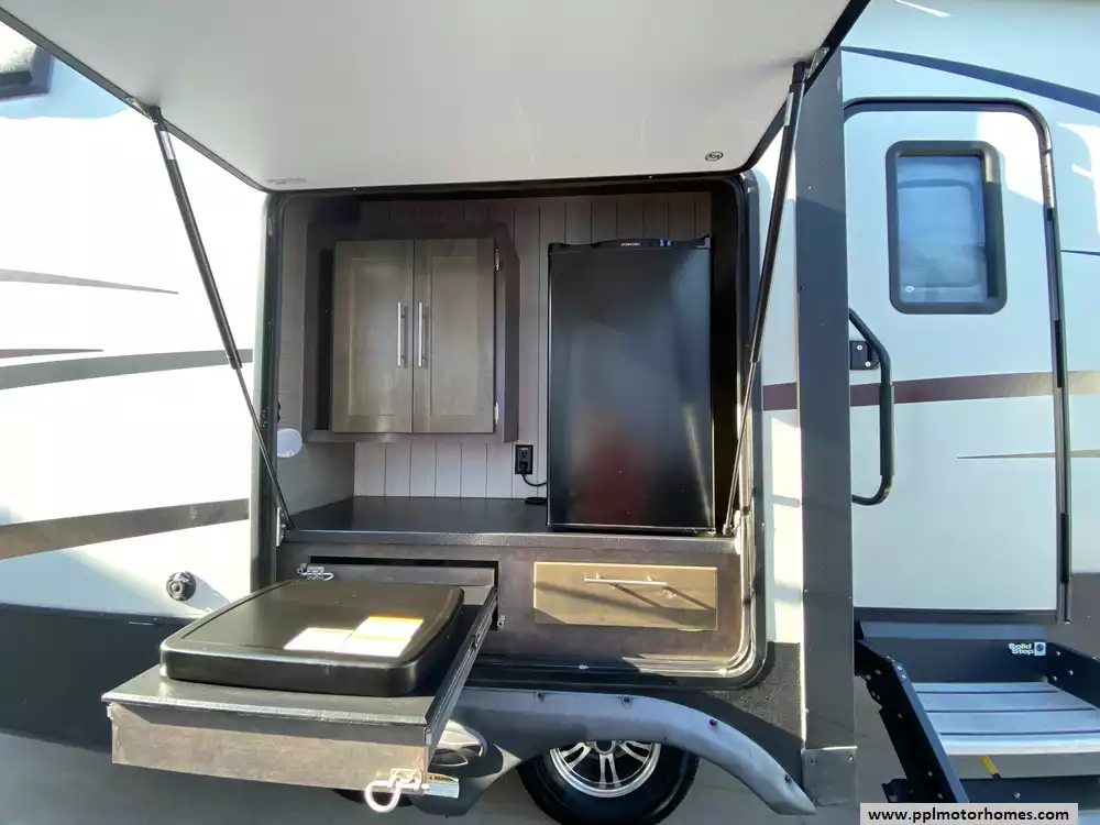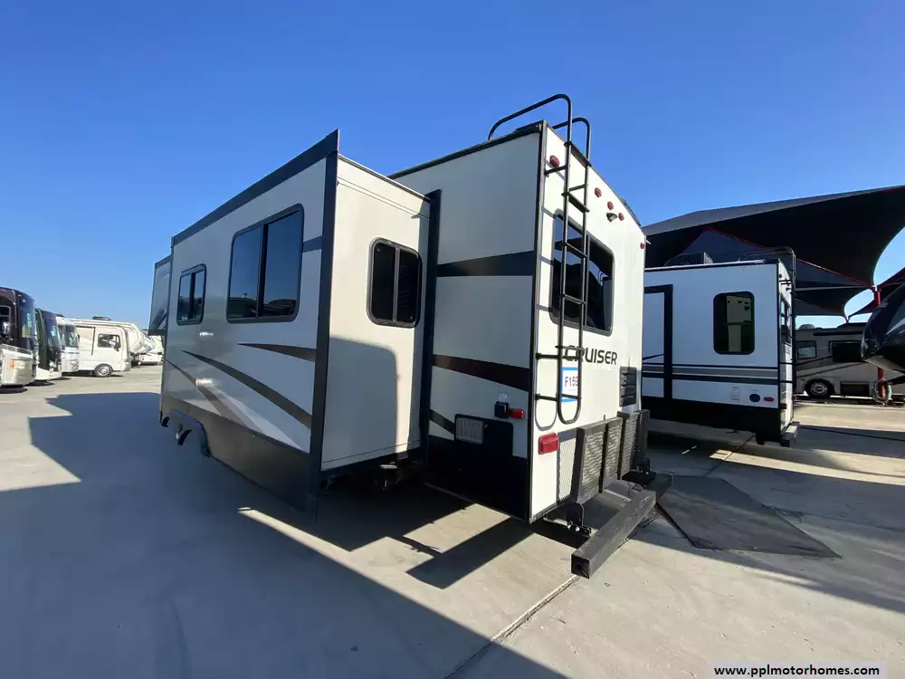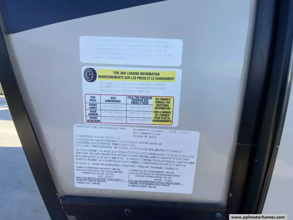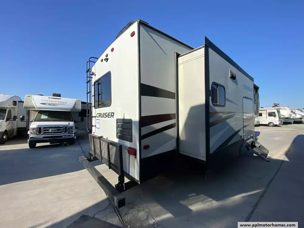 This 2018 Cruiser Aire 28 RD has an Electric Landing Gear, 3 Slide-outs, 1 Non-Ducted And 1 Ducted Air Conditioner, Double Door Gas/110v Dometic Refrigerator (Additional Refrigerator Present), Automatic Main Awning, Outside Speakers, 2 TVs, DVD Player, Outdoor Kitchen, Outside Shower, Fireplace, Microwave, 3 Burner Range, Oven, Wine Cooler, Tire Monitor System