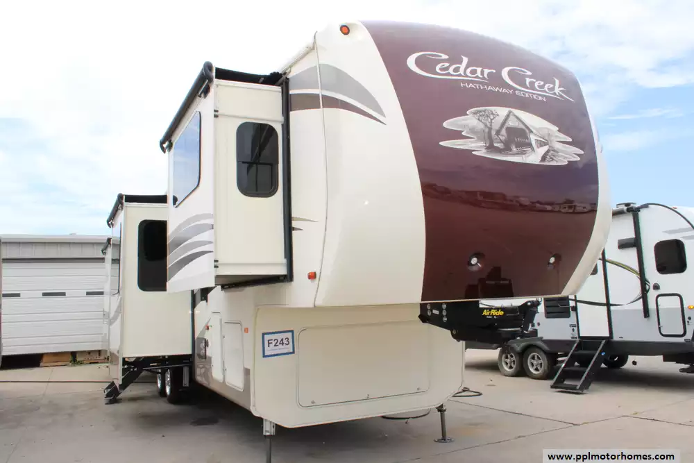 This Well-Kept 2018 Cedar Creek Hathaway 38FLX By Forest River Is Perfect For The Fulltimer. It's Amenities Include... 6 Point One-Touch Hydraulic Landing Gear, 6 Slide-Outs, 3 Ducted Air Conditioners, Residential Whirlpool Refrigerator, In-Fridge Ice Maker, Automatic Main Awning And Slide Awning, Washer/Dryer, Solar Panel, Heated Tanks, Outside Speakers, 2 TVs, Back-Up Camera, Outside Shower, Fireplace, Central Vacuum, Microwave, 3 Burner Range, Oven, MorRyde Entry Steps, And More! You're Sure To Never Miss Home While Traveling In This Cedar Creek Hathaway! Ask About PPL's Financing Options!
