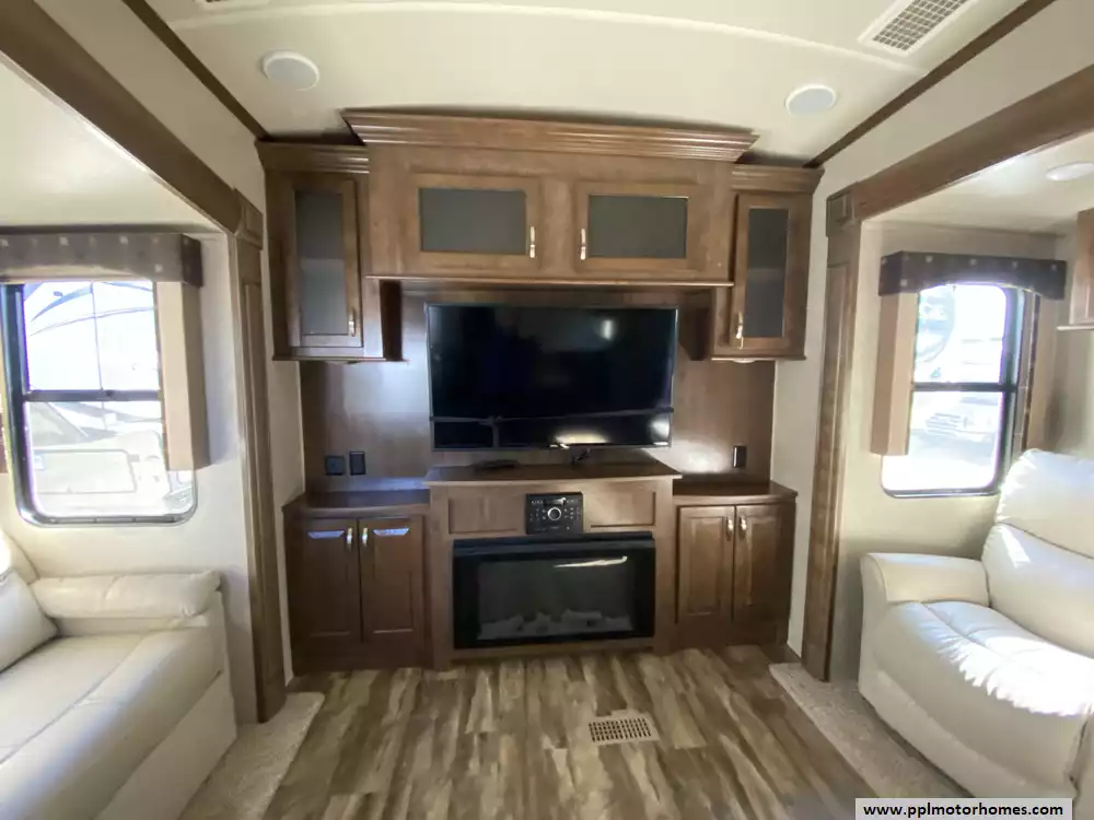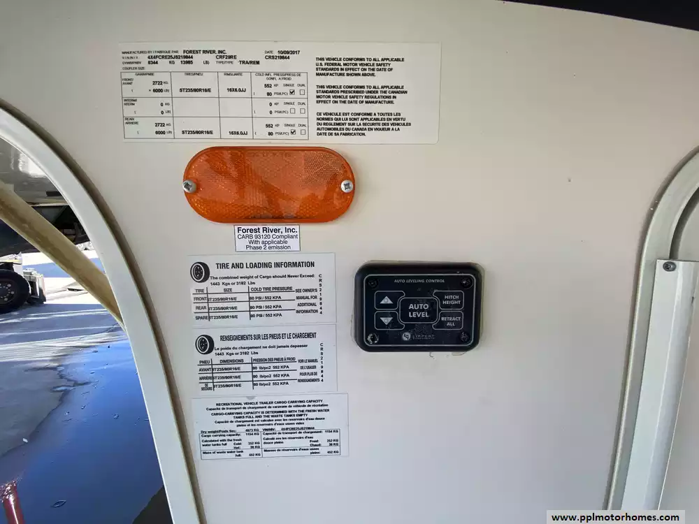 This 2018 Silverback 29RE has an Electric Landing Gear, 3 Slide-outs, 2 Ducted Air Conditioners, Double Door 110v Whirlpool Refrigerator, In-Fridge Ice Maker, Automatic Main Awning, Washer/Dryer Connections, Outside Speakers, 2 TVs, DVD Player, Outside Shower, Fireplace, Central Vacuum, Microwave, 3 Burner Range, Oven, Surround Sound in Living Area, Lightly Used Only A Few Times A Month.