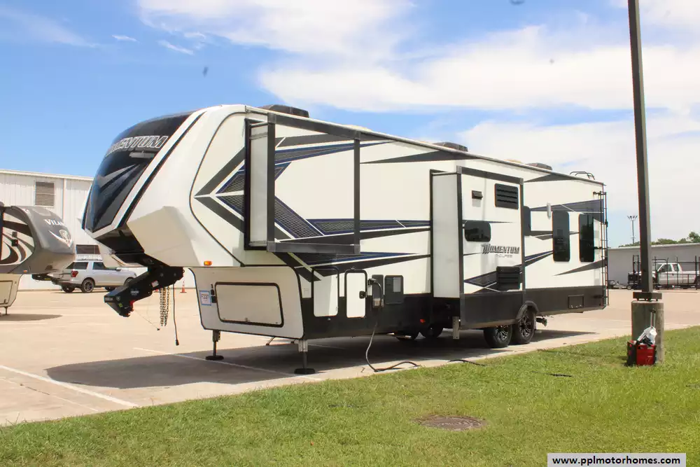 This 2018 Momentum 351M is a standout fifth wheel toy hauler that combines rugged capability with luxurious living spaces,catering to outdoor enthusiasts who crave adventure without sacrificing comfort.This model from Grand Design RV embodies innovation and versatility,offering a perfect blend of functionality and style.Features Include...3 Slide-outs, Onan Gas Generator, 3 Ducted Air Conditioners, 5 Door Gas/110v Norcold Refrigerator, Automatic Main Awning, Washer/Dryer Connections, Heated Tanks,Filling Station,Floating Patio, Outside Entertainment System, 2 TVs, DVD Player, Central Vacuum, Microwave, 3 Burner Range,and Oven.This is a versatile and well-appointed fifth wheel toy hauler, offering a perfect balance of adventure and comfort for outdoor enthusiasts.Its thoughtful design,premium features,and attention to detail make it a top choice for those seeking a luxurious yet functional RV experience.