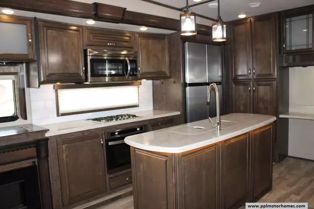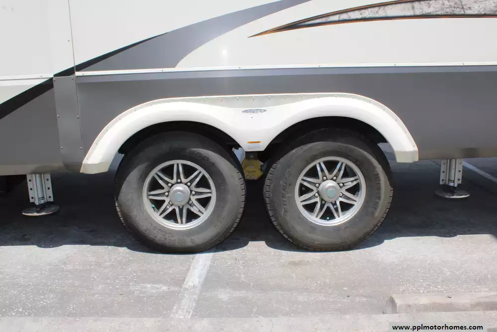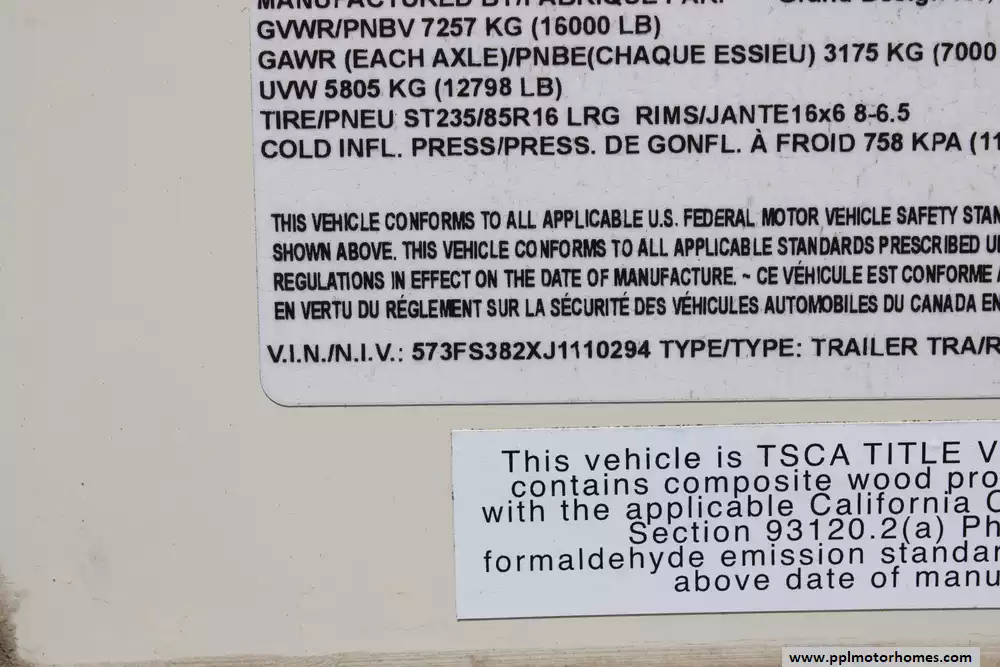 Specs: Length: 36.92 ft., Width: 8.42 ft., Height: 13.42 ft., Total Fresh Water Tank Capacity: 93 gal., Total Gray Water Tank Capacity: 100 gal., Total Black Water Tank Capacity: 50 gal., Total Number of Propane Tanks: 2, Total Propane Tank Capacity: 60 lbs