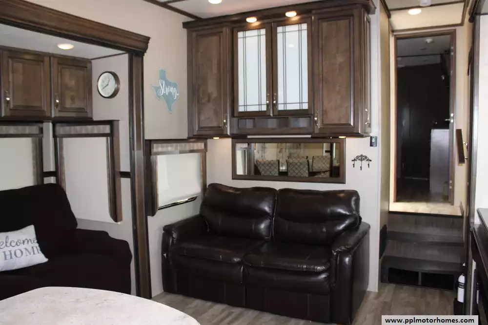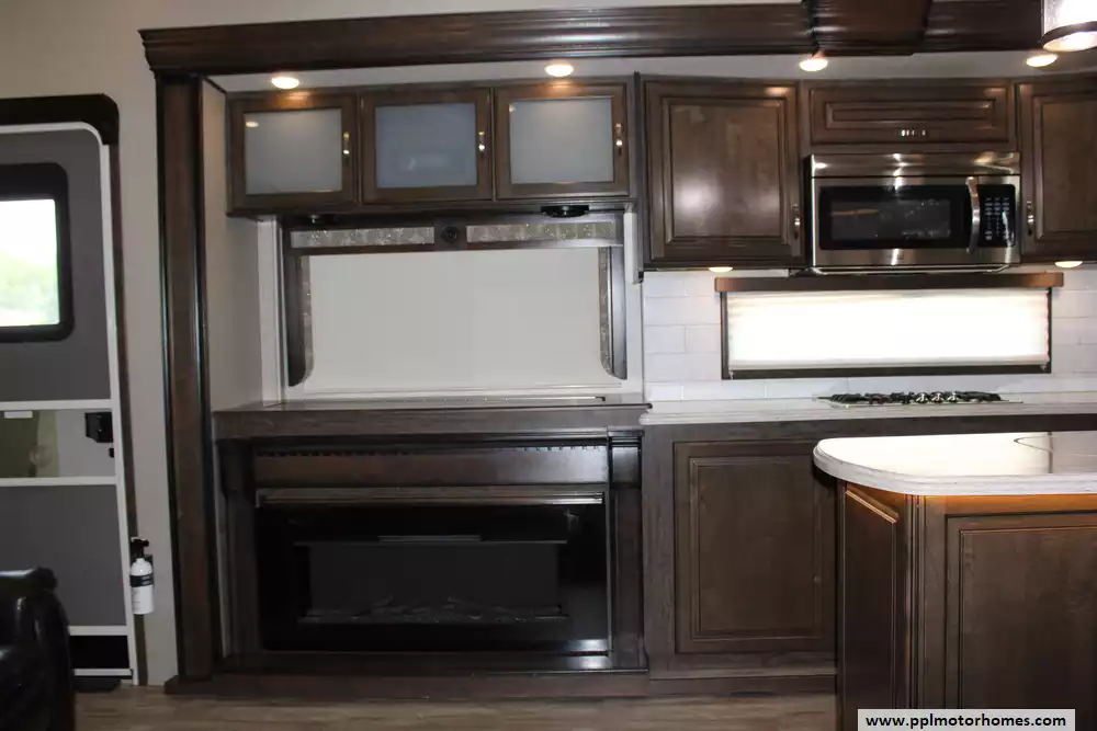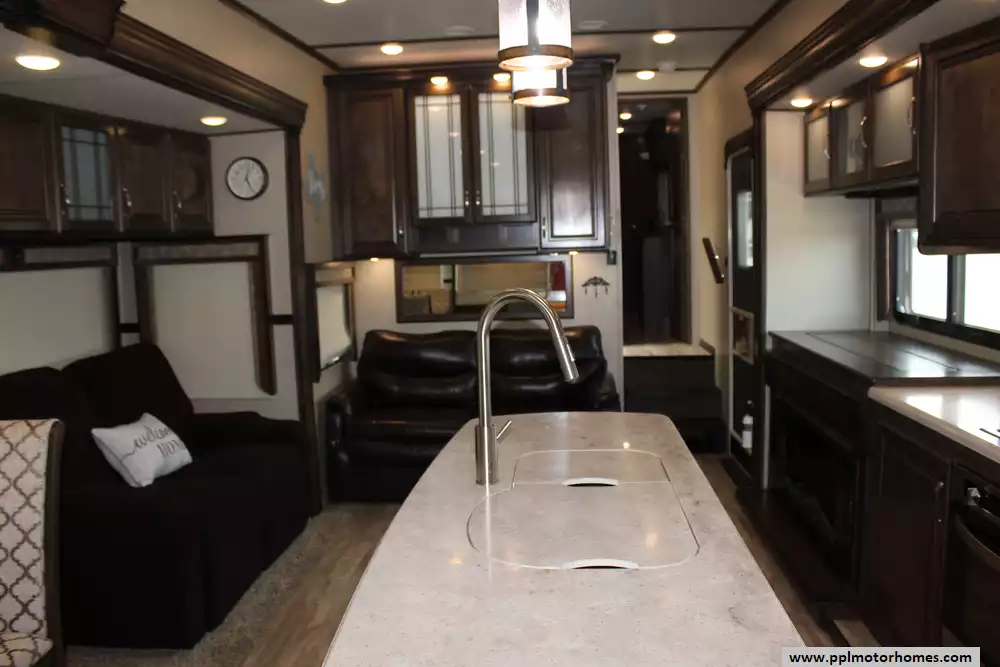 This 2018 Solitude 344GK is a luxury fifth wheel designed for extended stays and full-time RV living. Features Include...3 Slide-outs, 2 Ducted Air Conditioners, 4 Door Gas/110v Norcold Refrigerator, Automatic Main Awning And Window Awning, Washer/Dryer, Outside Entertainment System, 3 TVs, DVD Player, Outside Shower, Fireplace, Convection Microwave, 3 Burner Range, and Oven. The 2018 Grand Design Solitude 344GK combines luxury and practicality in a fifth wheel that's designed for comfort and convenience. Its well-designed layout and quality features make it an excellent choice for both weekend getaways and extended stays.