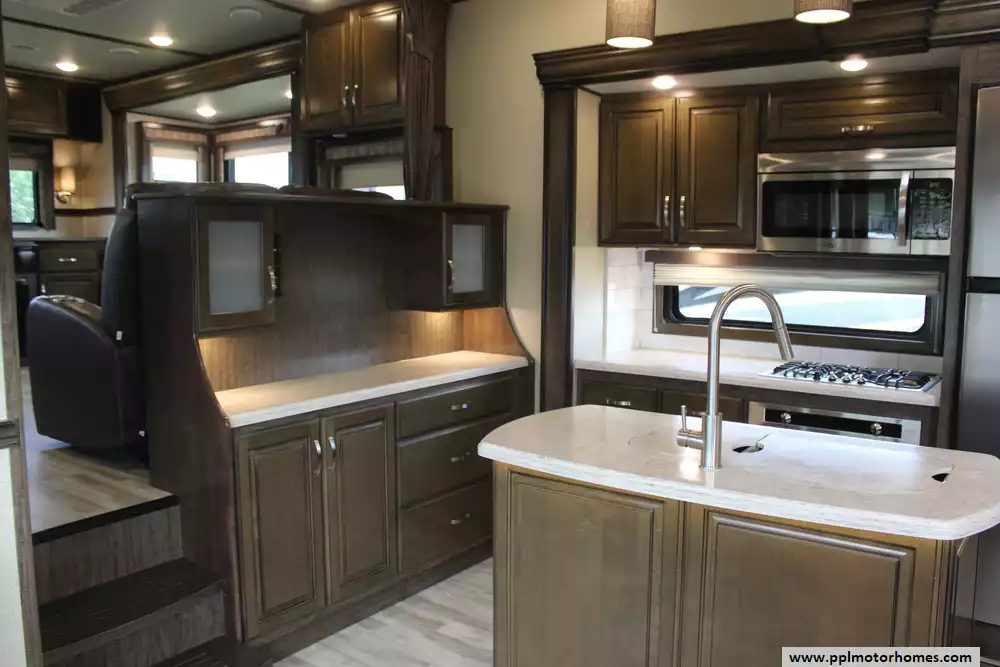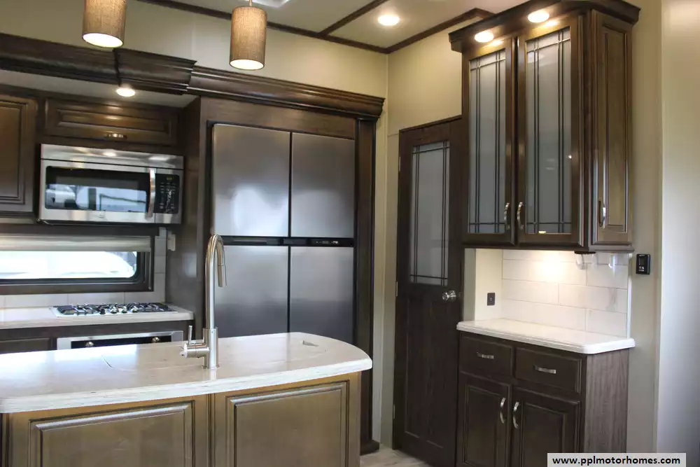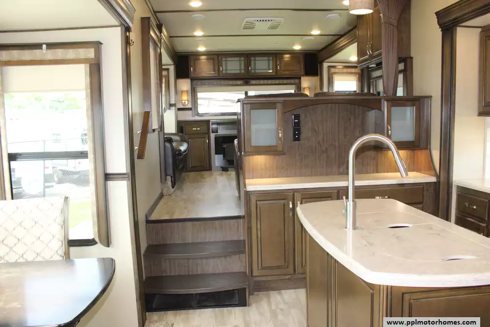 The central kitchen serves as a gourmet hub, complete with a refrigerator and a design that prioritizes both functionality and style. Beyond its interior elegance, the Solitude 375RES is known for its incredible storage capacity, including a standout rear exterior sliding tray that provides easy access to all your adventure gear. With a reputation for four-season durability and premium craftsmanship, this fifth wheel delivers a sophisticated home-away-from-home experience that is ready for your next grand adventure.
