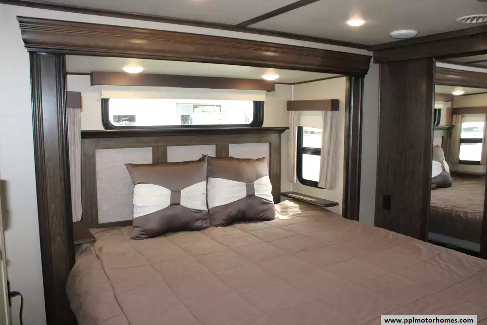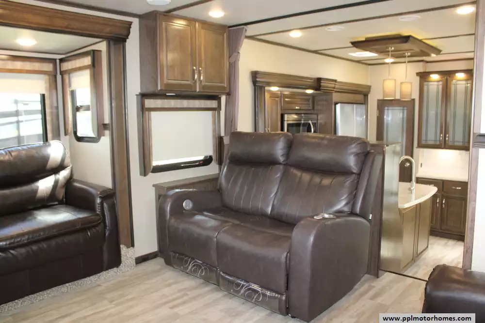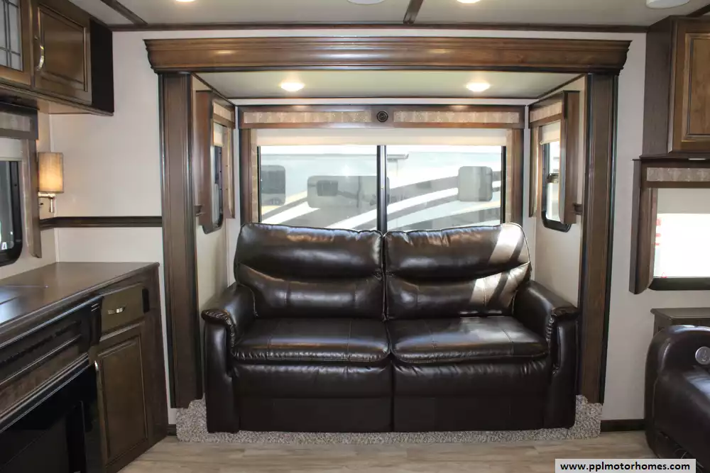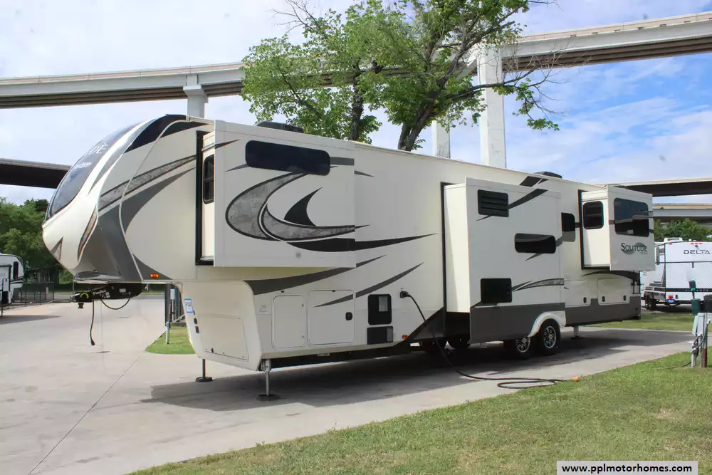 Experience the pinnacle of luxury travel with the 2018 Grand Design Solitude 375RES. This 43-foot fifth wheel is celebrated for its residential-style living and exceptional build quality, making it a top choice for extended stays and full-time enthusiasts. The expansive floor plan is anchored by 5 slide-outs, which open up a massive interior featuring the model's signature raised rear den. This unique layout creates distinct zones for relaxation and entertaining, offering a level of comfort and privacy rarely found in a mobile environment.