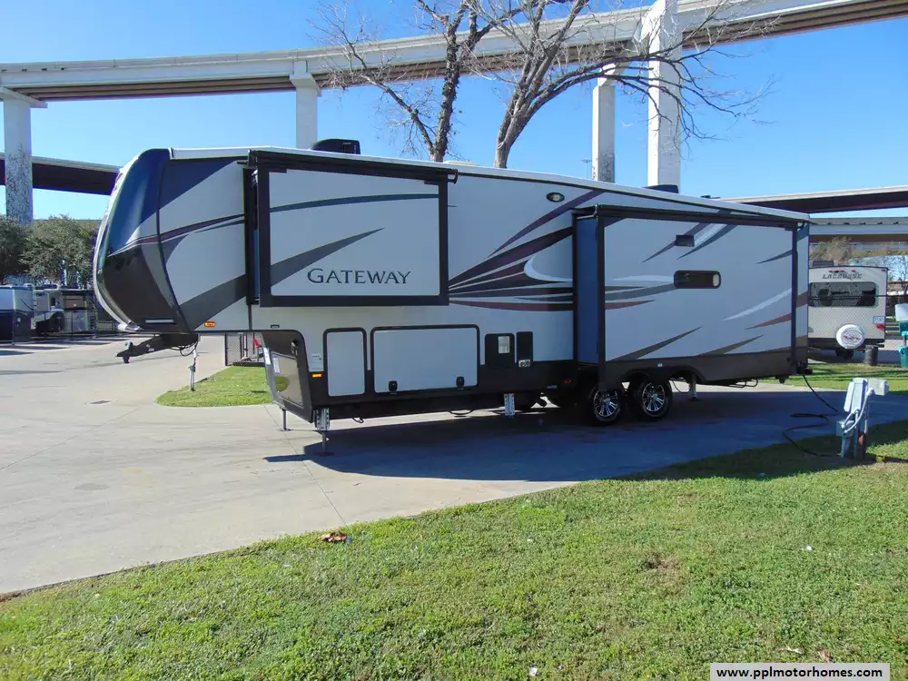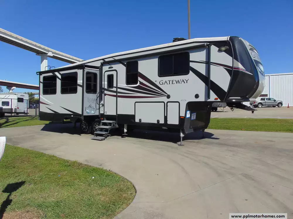 This 2018 Gateway 3200RLS is a luxury fifth-wheel trailer designed for travelers seeking comfort,style,and functionality.This model offers an elegant living space, modern amenities,and a well-thought-out layout,making it an ideal choice for extended trips or full-time RV living.Features Include...Hydraulic Landing Gear, 3 Slide-outs, 2 Ducted Air Conditioners, 4 Door 12v Refrigerator, Automatic Main Awning, Washer/Dryer Connections, Outside Speakers, 2 TVs, Outside Shower, Fireplace, Microwave, 3 Burner Range,and Oven.It offers an exceptional RV experience for those seeking both adventure and relaxation.