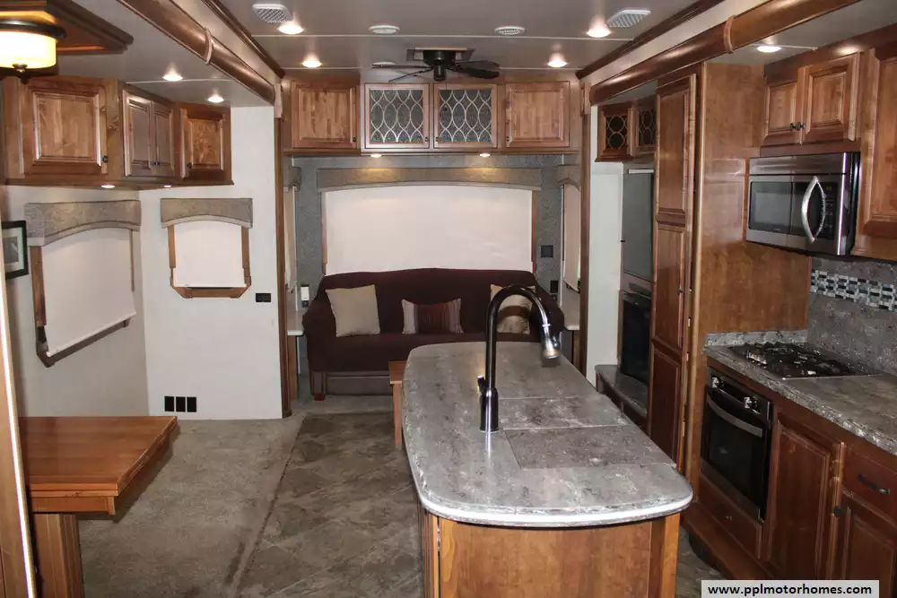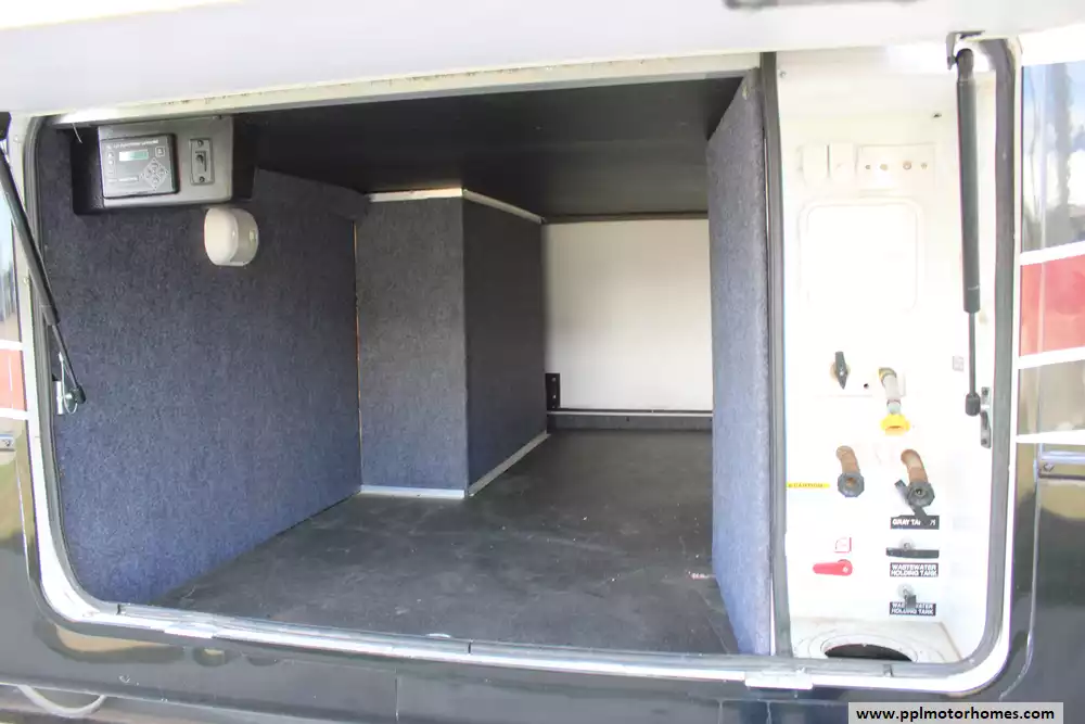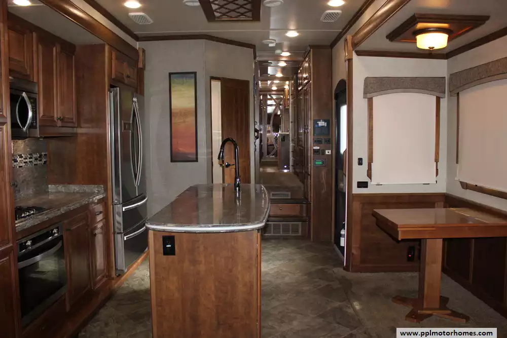 Specs: Length: 42.9 ft., Width: 8 ft., Height: 13.25 ft., Payload Capacity: 2,205 lbs., Total Fresh Water Tank Capacity: 80 gal., Total Gray Water Tank Capacity: 84.5 gal., Total Black Water Tank Capacity: 84.5 gal.
