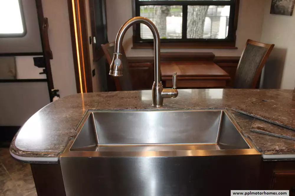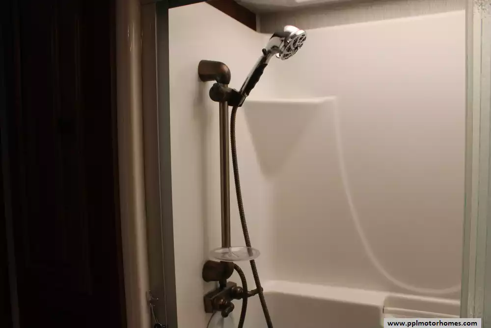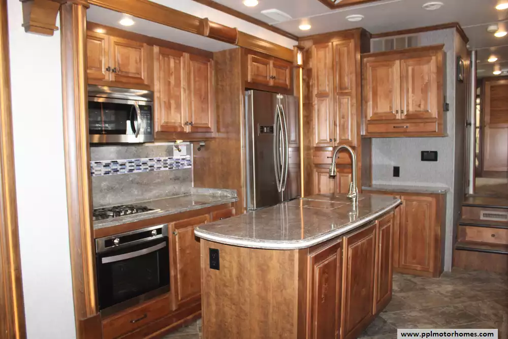 Specs: Length: 41.3 ft., Width: 8 ft., Height: 13.3 ft., Payload Capacity: 2,555 lbs., Total Fresh Water Tank Capacity: 80 gal., Total Gray Water Tank Capacity: 90 gal., Total Black Water Tank Capacity: 45 gal.