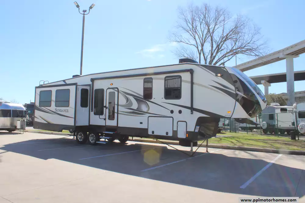 This 2018 Heartland Sundance 3710MB is a luxurious fifth-wheel trailer that redefines the concept of home on the road. Combining elegant design with practical features, this RV offers a spacious and comfortable living space that's perfect for families and adventurers alike..Features Include...Electric Landing Gear, 4 Slide-outs, 2 Ducted Air Conditioners, 4 Door Residential Refrigerator, In-Fridge Ice Maker, Automatic Main Awning,Mor Ryde Suspensions,Weather Guard Protection, Washer/Dryer Connections, Outside Speakers, 3 TVs, Outside Shower, Fireplace, Microwave, 3 Burner Range,and Oven.This is a top-of-the-line fifth-wheel trailer that offers the perfect combination of luxury, comfort, and convenience. Whether you're hitting the road for a weekend getaway or embarking on a cross-country adventure, this RV is sure to exceed your expectations and make every journey unforgettable.