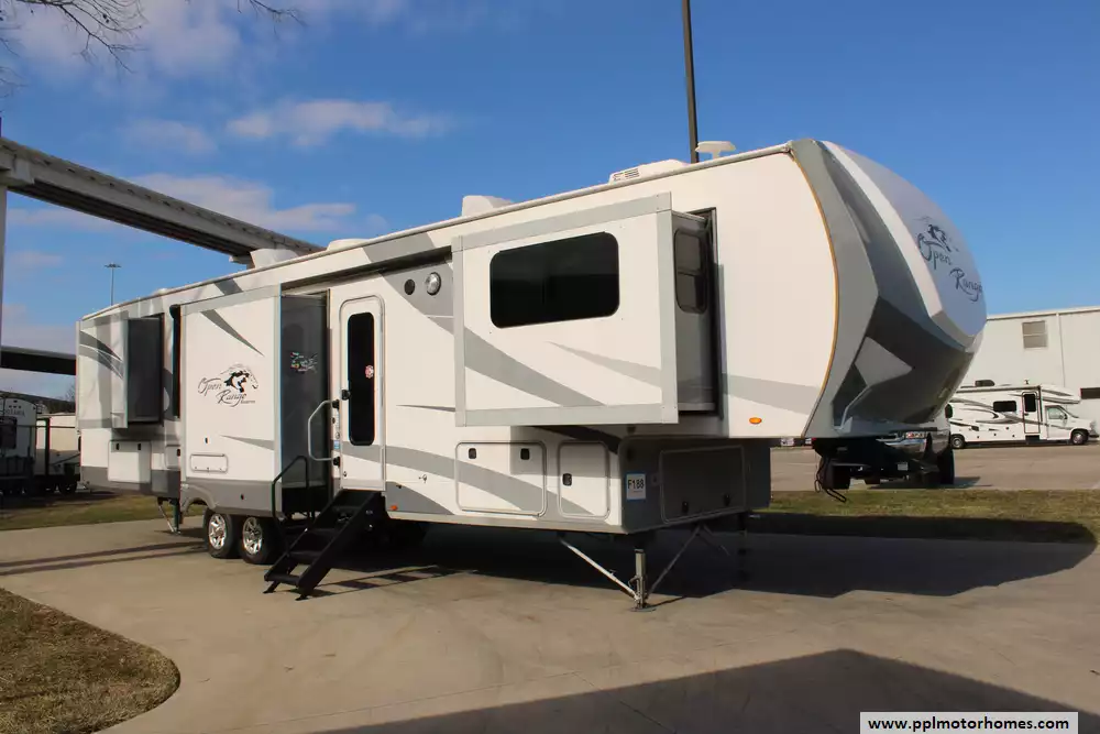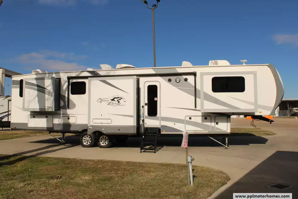 This 2018 Open Range 376FBH is known for its spacious and luxurious design, offering a comfortable and residential feel for extended stays or full-time living.Comforts Include...Has an Electric Landing Gear, 5 Slide-outs, 1 Non-Ducted And 2 Ducted Air Conditioner, Side by Side 110v Residential Refrigerator, In-Fridge Ice Maker, Automatic Main Awning, Washer/Dryer Connections, Outside Speakers, 2 TVs, Outside Shower, Fireplace,Step Above Steps,Four Season Package, Convection Microwave, 3 Burner Range,and Oven.It caters to those seeking a luxurious and spacious living space. With its unique front living area, residential-style amenities, and high-quality construction, the 376FBH model offers a comfortable and enjoyable RV experience for both short trips and extended stays.