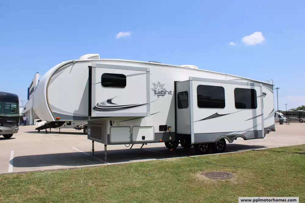 Specs: Length: 33.9 ft., Width: 8.08 ft., Height: 12.58 ft., Interior Height: 7.67 ft., Payload Capacity: 1,725 lbs., Total Fresh Water Capacity: 51 gal., Total Gray Water Capacity: 58 gal., Total Black Water Tank Capacity: 29 gal., Total Number of Propane Tanks: 3, Total Propane Tank Capacity: 60 lbs.