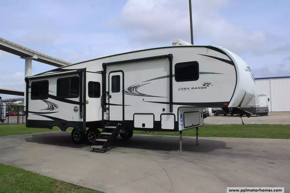 Experience the perfect balance of luxury and easy towing with this 2018 Open Range Ultra Lite 291RL. Known for its industry-leading wide-body construction and high interior ceilings, this 31-foot fifth wheel provides a residential atmosphere that feels significantly larger than its weight class suggests. The triple slide-out layout creates an expansive living area anchored by a warm fireplace and a fully equipped kitchen featuring a microwave, three-burner range, oven, and a double-door Norcold gas/110v refrigerator. Built with a durable fiberglass body and a reliable rubber roof, this model is designed for long-lasting performance and the spacious comfort that Highland Ridge is famous for.
