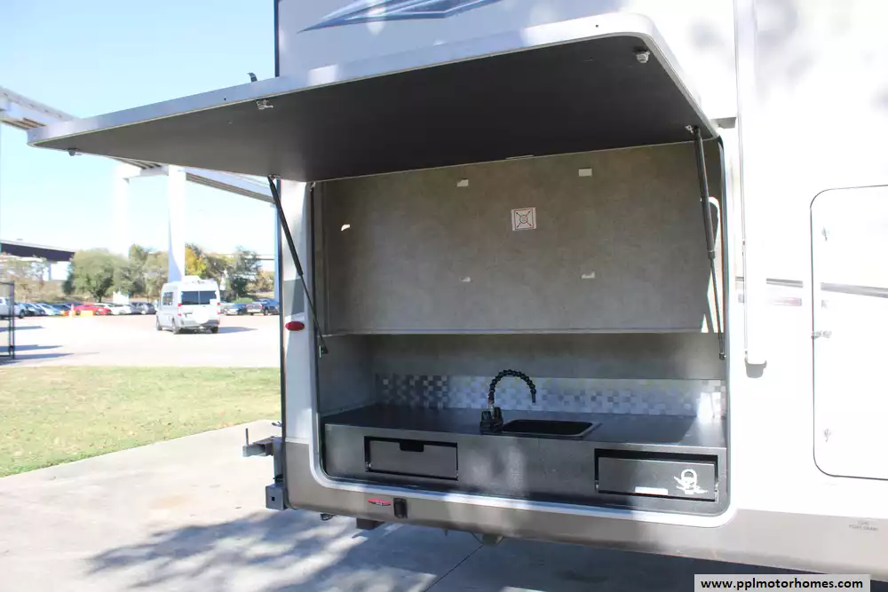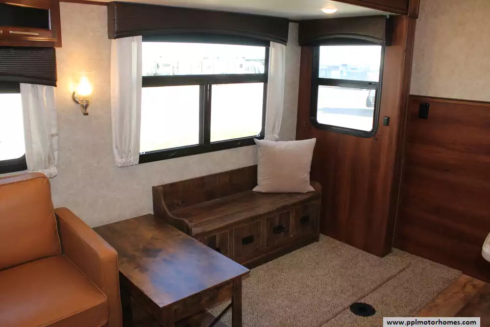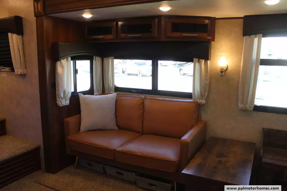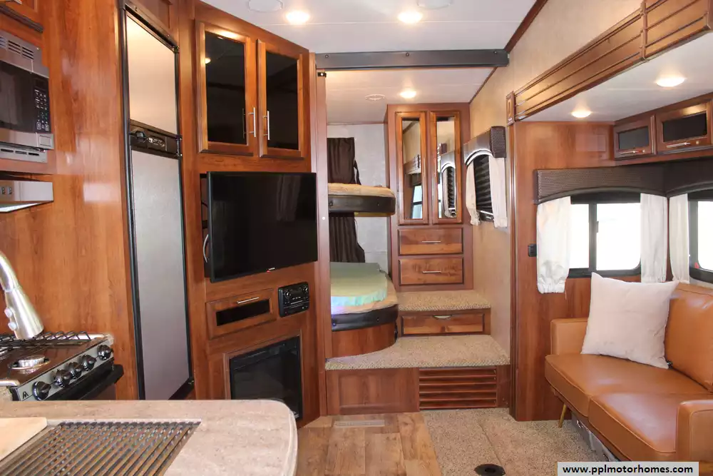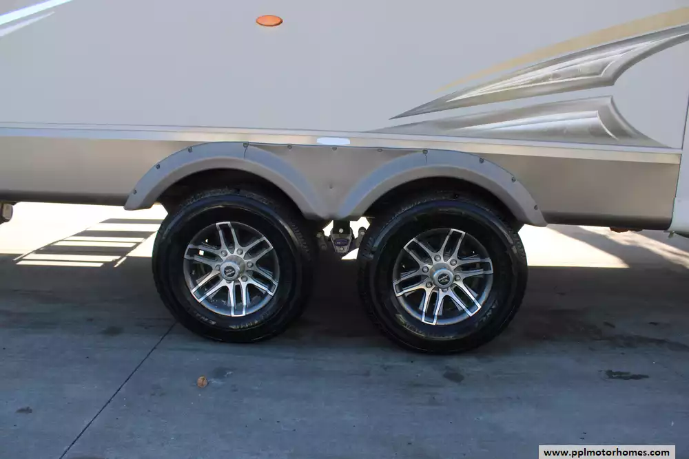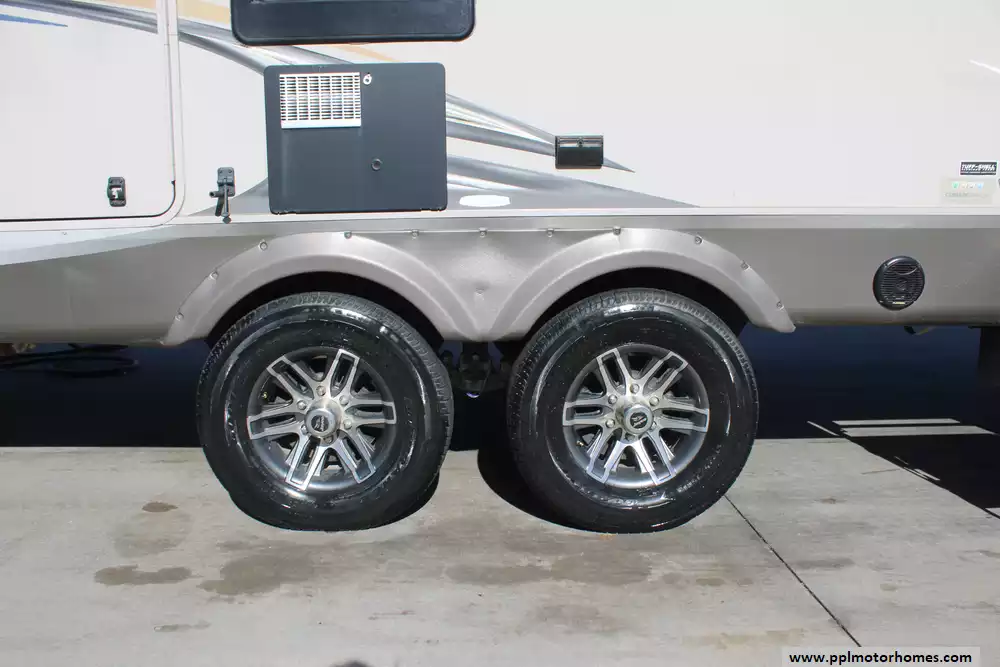 Specs: Length: 34.9 ft., Width: 8 ft., Height: 12.41 ft., Interior Height: 6.25 ft., Payload Capacity: 1,475 lbs., Total Fresh Water Tank Capacity: 43 gal., Total Gray Water Tank Capacity: 73.5 gal., Total Black Water Tank Capacity: 32.5 gal.