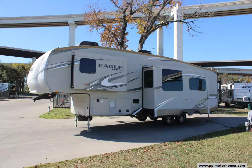 This 2018 Jayco Eagle 29.5BHDS is designed for family camping, longer trips, and comfortable living on the road. Features Include...Electric Landing Gear, 2 Slide-outs, 2 Ducted Air Conditioners, Double Door Gas/110v Norcold Refrigerator, Automatic Main Awning, Outside Speakers, 2 TVs, Outdoor Grill, Outdoor Kitchen, Outside Shower, Fireplace, Microwave, 3 Burner Range, and Oven.