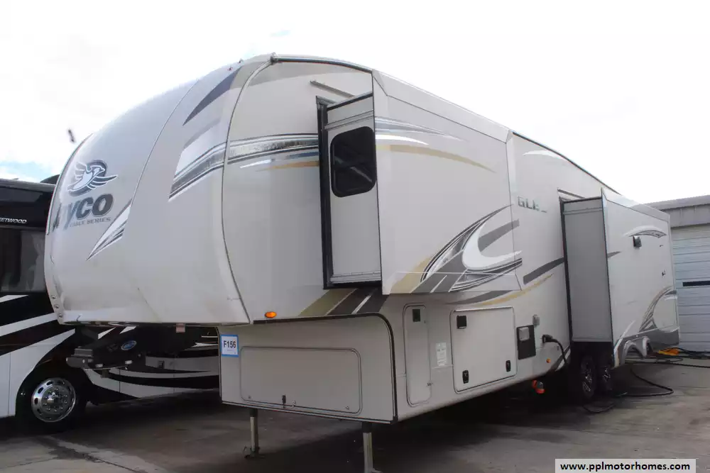 The 2018 Jayco Eagle 321RSTS is a premium fifth-wheel RV designed for travelers seeking comfort and luxury on the road. Measuring 36 feet 11 inches in length and equipped with three slideouts, it offers a spacious interior layout. The rear living area features a tri-fold hide-a-bed sofa and two swivel glider recliners, providing ample seating for relaxation. The kitchen boasts high-end amenities, including a 21-cubic-foot residential refrigerator, a three-burner stove, and a stainless steel microwave. The master bedroom offers a queen-sized bed with under-bed storage, and the bathroom includes a residential-style shower with a glass door. Additional features include a 15,000 BTU "Whisper Quiet" air conditioning unit, dual power awnings, frameless tinted windows, rear camera prep, and a wireless remote control system. Built with Jayco's TuffShell construction and insulated with Climate Shield technology, the Eagle 321RSTS is designed for four-season use, ensuring comfort in various weather conditions.
