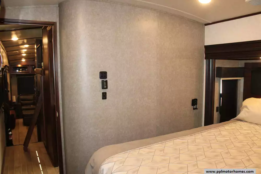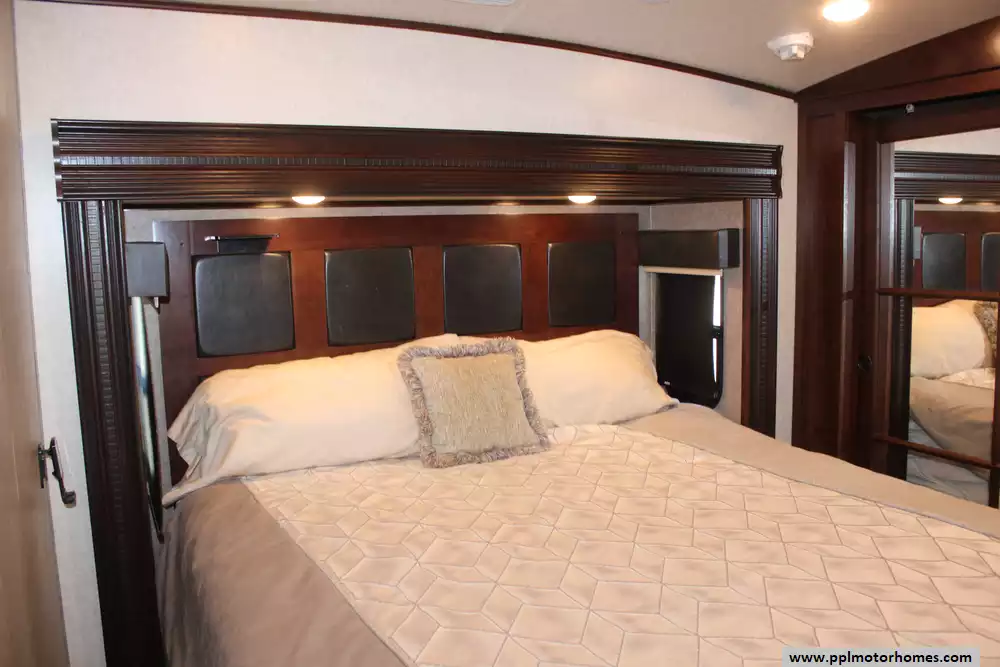 The interior is meticulously appointed with premium amenities, including a chef-ready kitchen featuring a double door residential Whirlpool refrigerator with an in-fridge ice maker, a convection microwave, a three-burner range, and an oven. Stay comfortable in any climate with two ducted air conditioners and a cozy fireplace that serves as a beautiful focal point in the living area. With four TVs and two DVD players throughout, a central vacuum system for easy maintenance, and washer/dryer connections, this coach is fully equipped for long-term luxury. This 2018 Pinnacle 37MDQS perfectly blends world-class craftsmanship with the comforts of home, making it the ideal choice for your next journey.