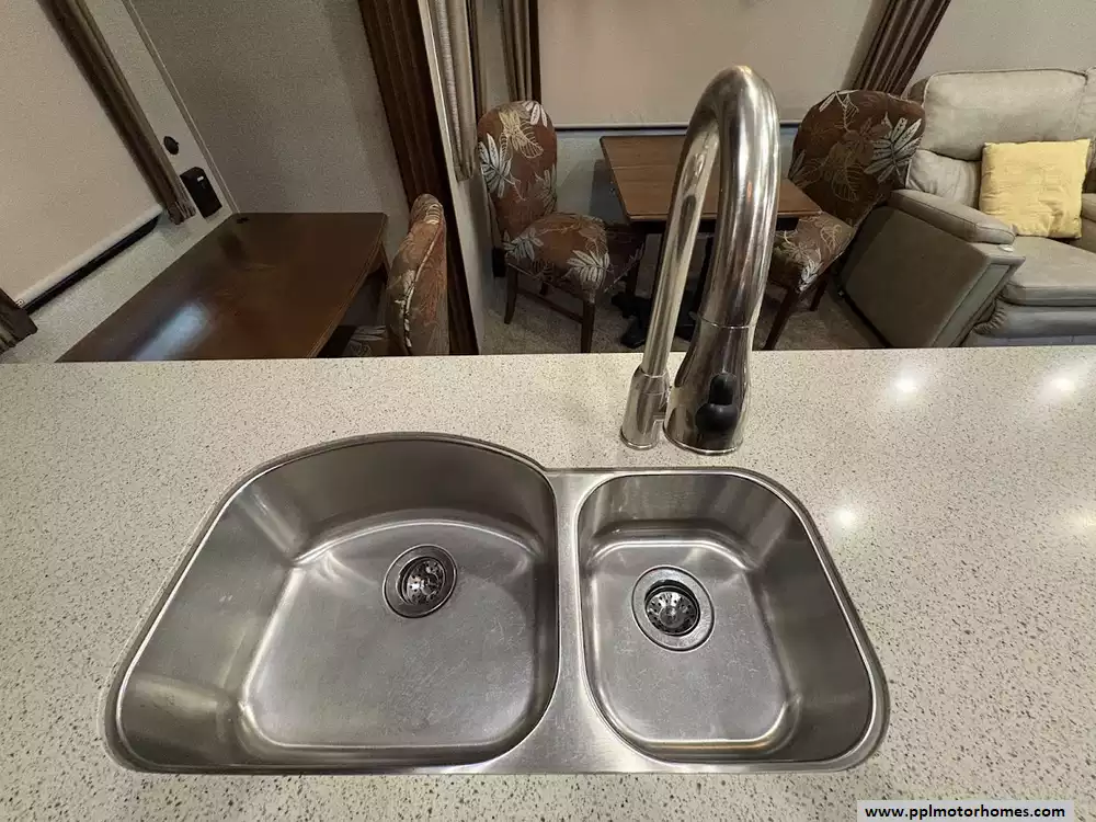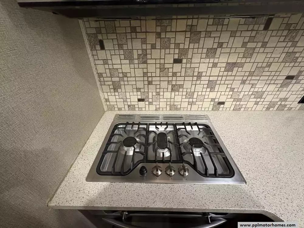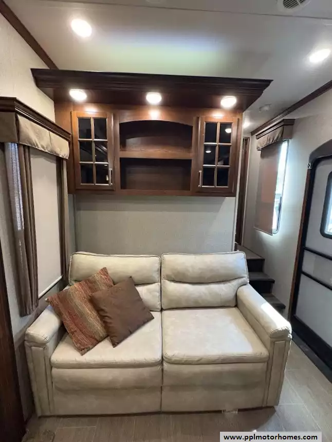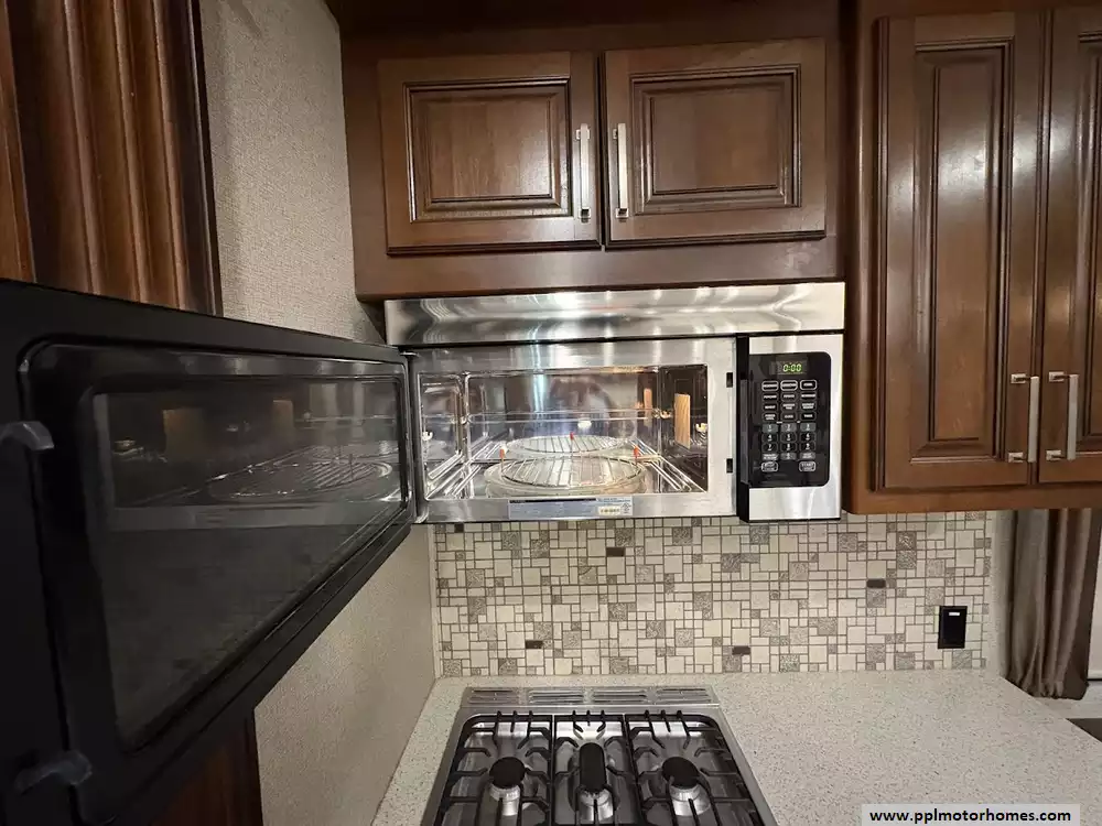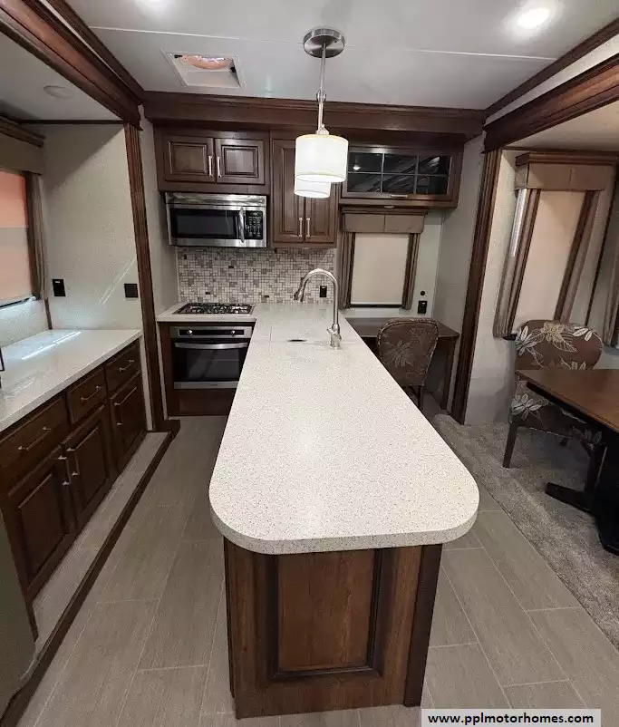 This 2018 Alpine 3301GR sleeps up to 4 people, has a Hydraulic Landing Gear, 3 Slide-outs, 2 Ducted Air Conditioners, 4 Door Residential Samsung Refrigerator, In-Fridge Ice Maker, Automatic Main Awning, Washer/Dryer, Dishwasher, Outside Entertainment System, 3 TVs, Central Vacuum, Convection Microwave, 3 Burner Range, Oven