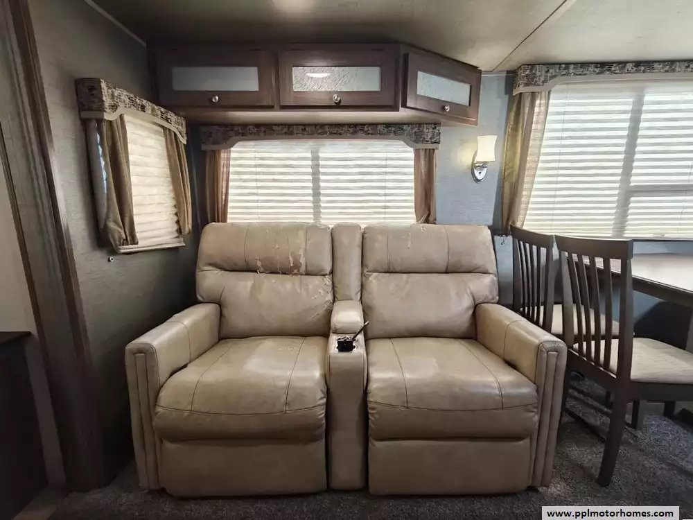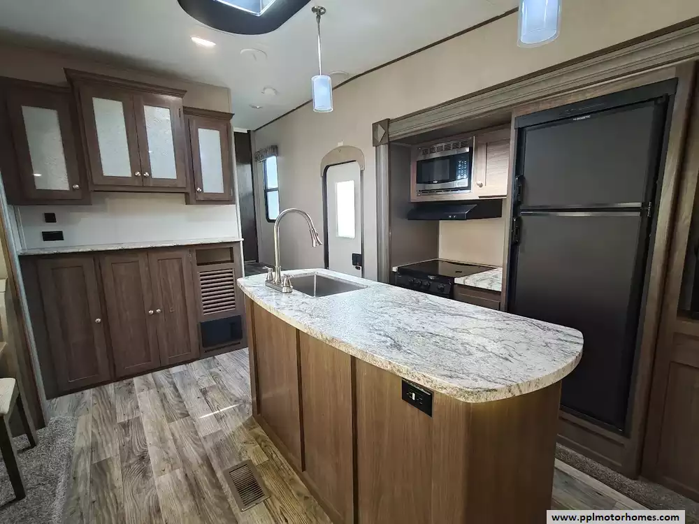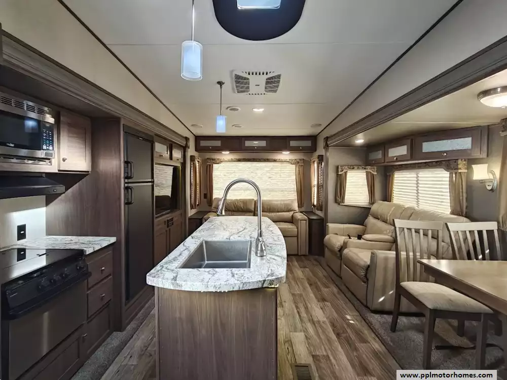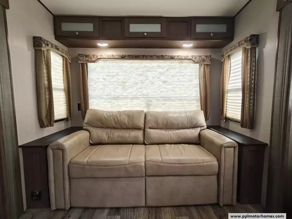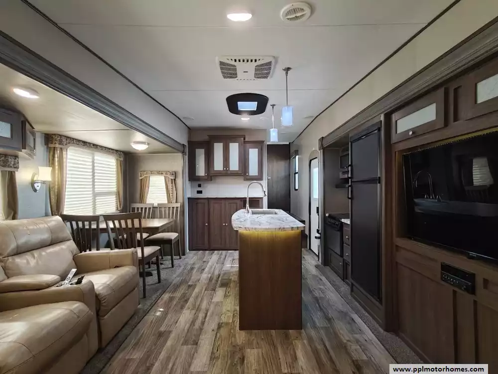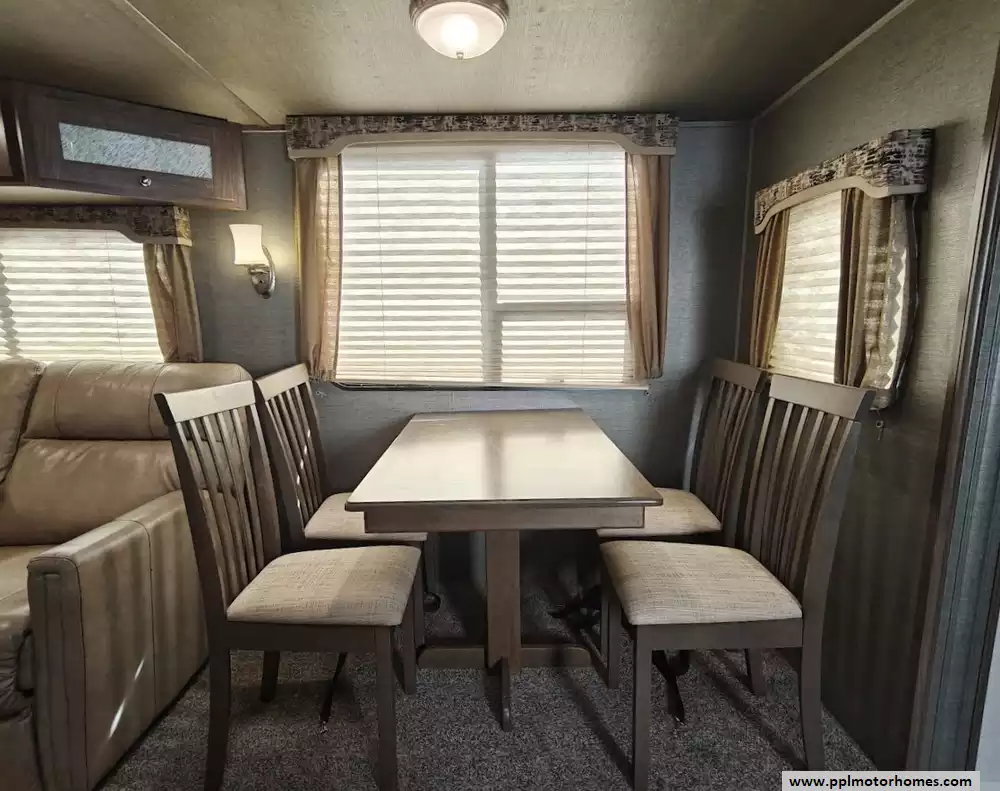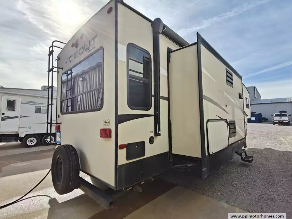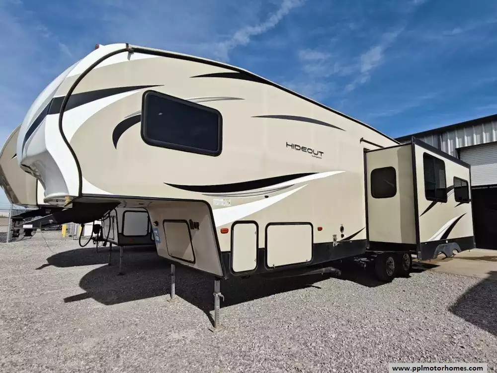 Experience the perfect balance of luxury and practicality with this 2018 Hideout 299RLDS. Keystone is renowned for the Hideout's value-packed reputation, often referred to as an entry-level luxury brand that doesn't compromise on residential comforts. This 33-foot fifth wheel is built for durability and ease of use, featuring a sleek fiberglass body and a reliable TPO roof. Setting up camp is effortless thanks to the electric landing gear and automatic main awning, while the model's signature design makes hitching and towing more manageable for all skill levels. The outdoor living experience is fully equipped with outside speakers, an outdoor grill for open-air cooking, and a convenient outside shower to keep the interior pristine.