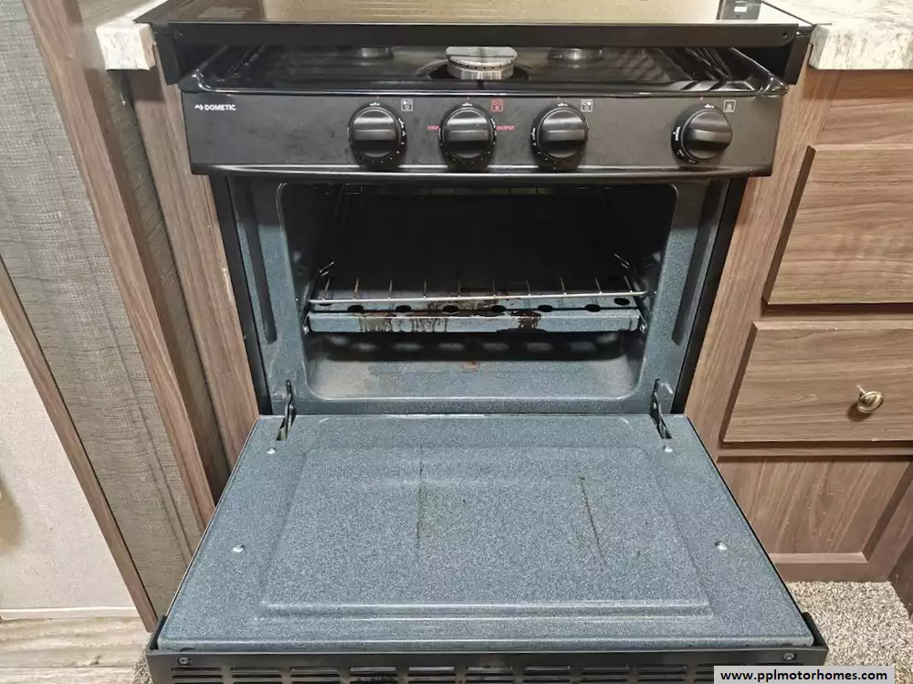 Inside, the double slide-outs transform the living area into a spacious retreat that is ideal for relaxing or entertaining. This specific 299RLDS floorplan is highly sought after for its airy rear-living layout and high-end climate control, featuring two ducted air conditioners to keep you comfortable in any season. The chef-ready kitchen includes a three-burner range, oven, microwave, and a double-door gas/110v Dometic refrigerator to handle all your meal prep needs. With an included TV for evening entertainment and ample storage throughout, this Hideout provides a refined, home-away-from-home experience that stands out as one of the most reliable and comfortable choices in its class.