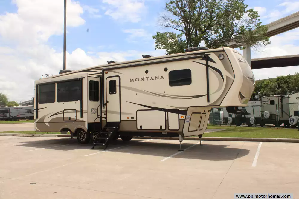 This 2018 Montana Legacy 3121RL is a luxurious fifth wheel trailer designed for discerning travelers who value comfort,style,and quality craftsmanship.It offers a spacious layout, high-end amenities,and thoughtful design features that make it ideal for extended stays or full-time living on the road.Features Include...3 Slide-outs, 2 Ducted Air Conditioners, Residential Samsung Refrigerator,Back Up Camera and Monitor,Theatre Seating,MorRyde Steps, In-Fridge Ice Maker, Automatic Main Awning And Slide Awning, Washer/Dryer Connections, Outside Entertainment System, 3 TVs, DVD Player, Fireplace, Central Vacuum, Microwave, 3 Burner Range,and Oven.An ideal choice for travelers seeking a high-end RV lifestyle on their adventures.