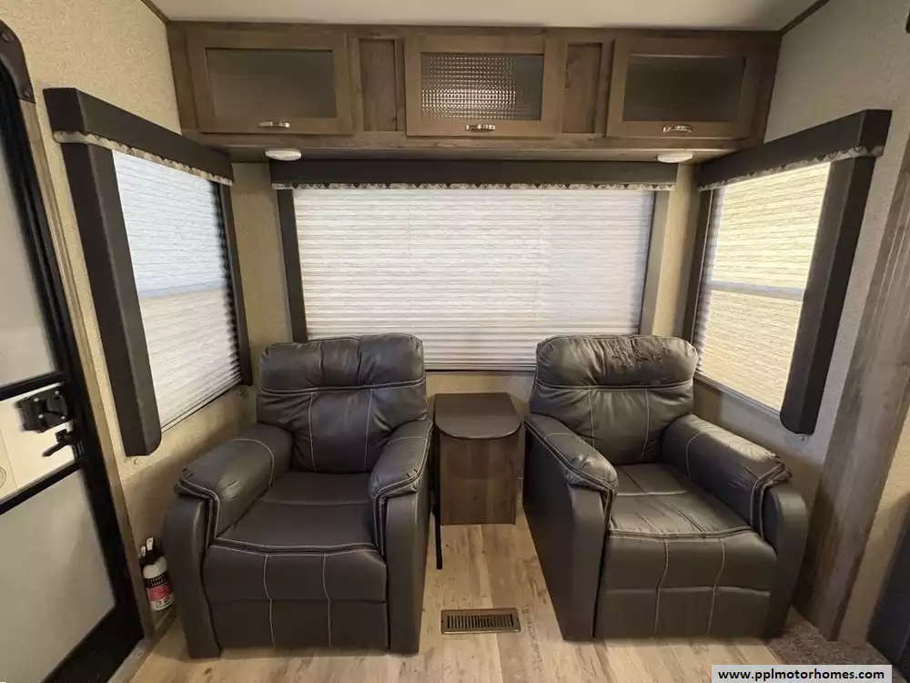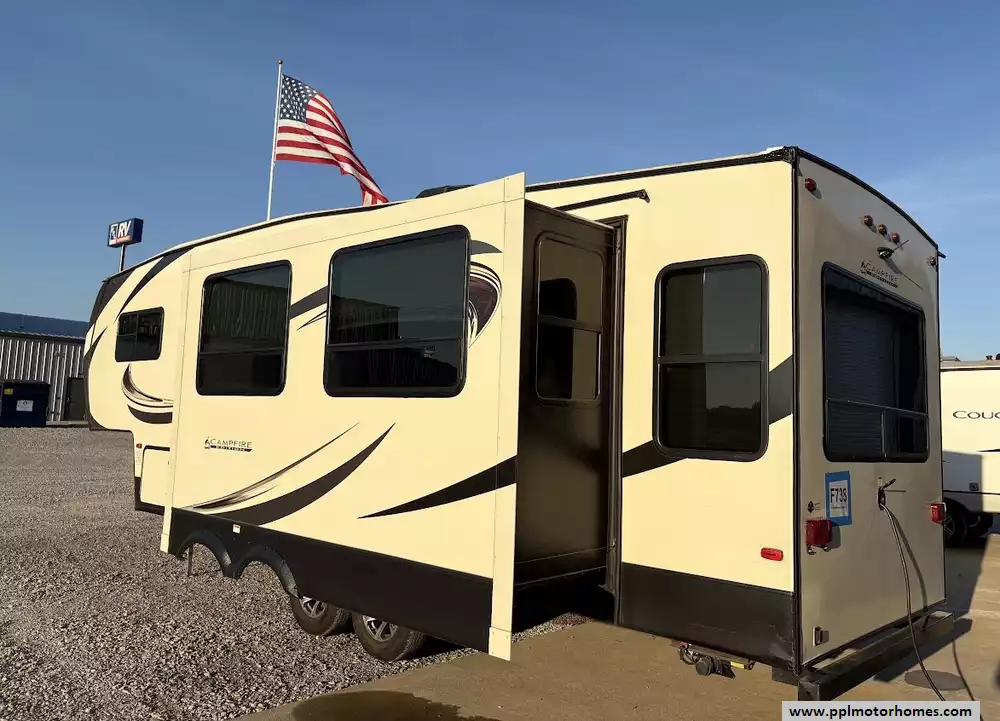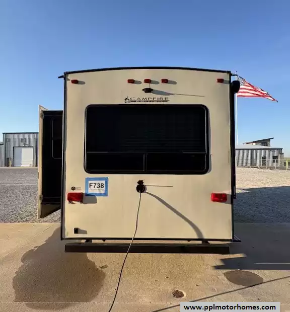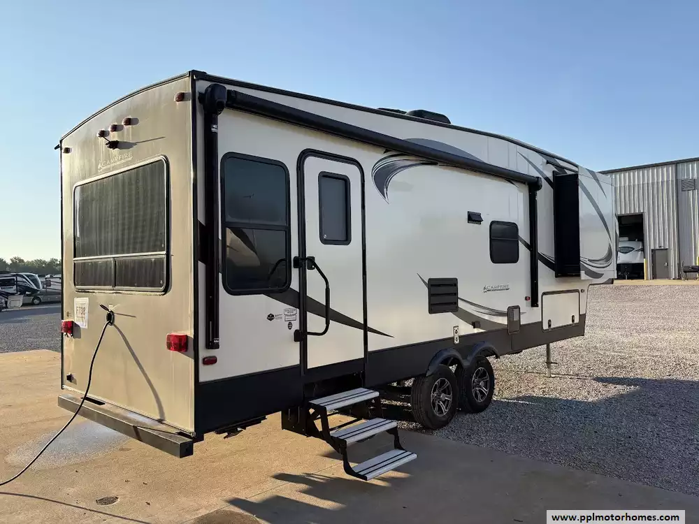 This 2018 Sprinter Campfire Edt 26FWRL sleeps up to 6 people, has an Electric Landing Gear, 2 Slide-outs, 1 Ducted Air Conditioner, Double Door Gas/110v Dometic Refrigerator, Automatic Main Awning, TV, 3 Burner Range, Oven