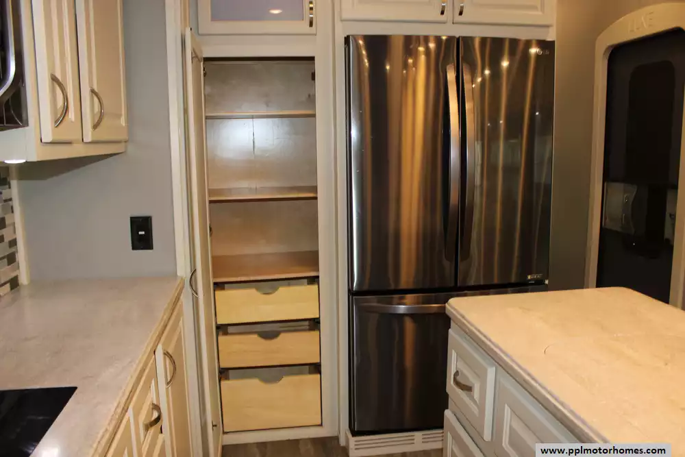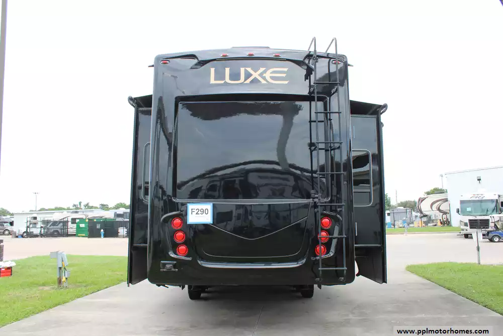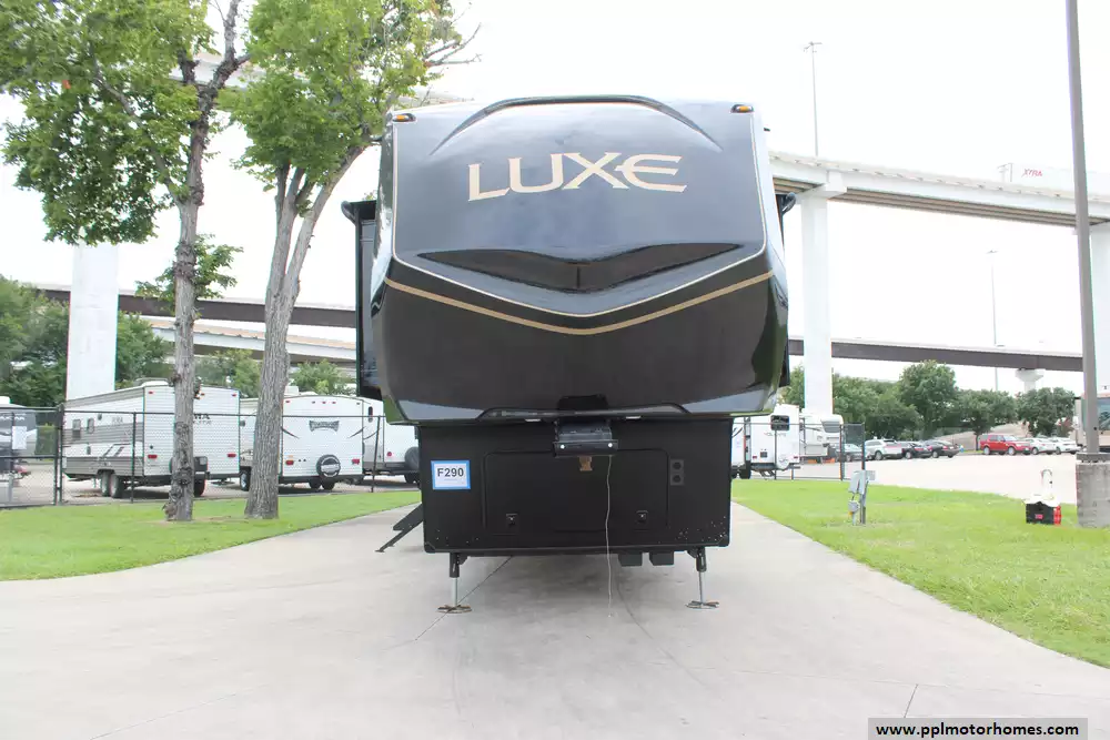 This 2018 Luxe Elite 42RE is a top-tier luxury fifth wheel built for full-time living and serious adventurers. Amenities Include...Hydraulic Landing Gear, 4 Slide-outs, 3 Ducted Air Conditioners, 110v Residential Lg Refrigerator, In-Fridge Ice Maker, Automatic Main Awning And Window/Slide Awnings, Washer/Dryer, Dishwasher, Satellite Dish, 2 TVs, Outside Shower, Fireplace, Convection Microwave, and 3 Burner Range.