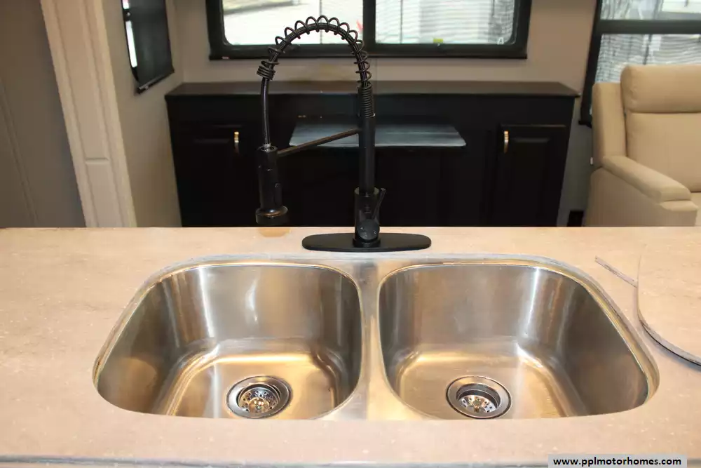 Specs: Length: 43.10 ft., Height: 13.3 ft., Total Fresh Water Tank Capacity: 100 gal., Total Gray Water Tank Capacity: 80 gal., Total Black Water Tank Capacity: 40 gal.