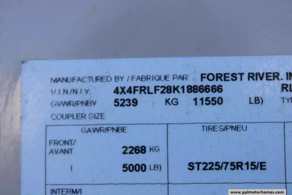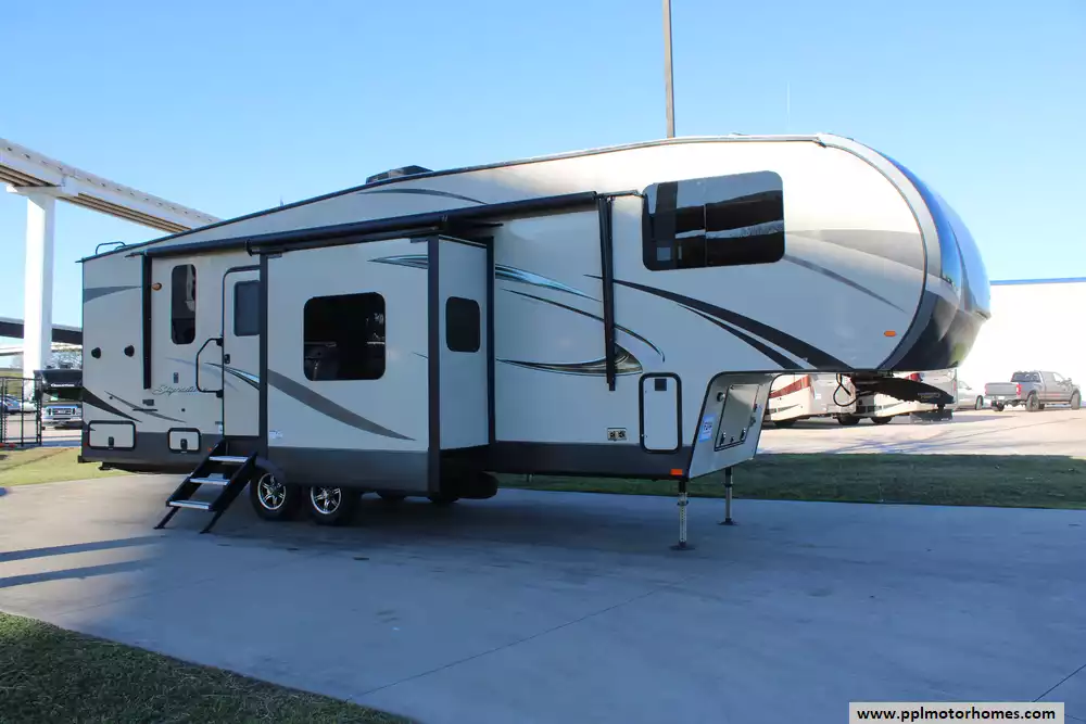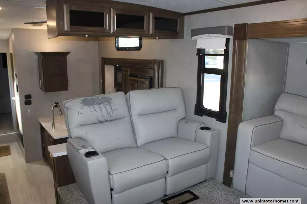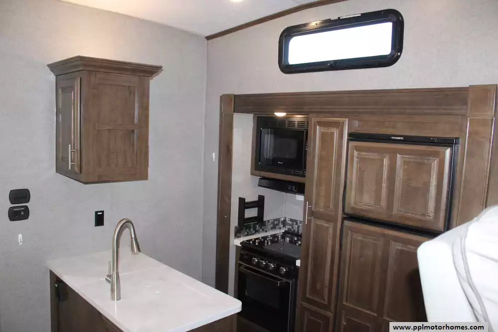 Specs: Length: 34.11 ft., Width: 8 ft., Height: 13 ft., Payload Capacity: 2,171 lbs., Total Fresh Water Tank Capacity: 60 gal., Total Gray Water Tank Capacity: 90 gal., Total Black Water Tank Capacity: 45 gal., Number of Propane Tanks: 2, Total Propane Tank Capacity: 60 lbs.