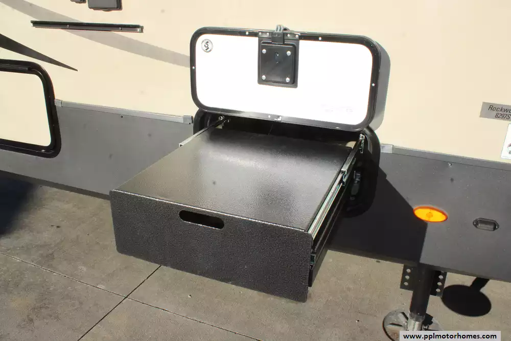 This 2019 Rockwood Signature 8297S is a well-equipped, mid-size RV that blends lightweight towing with spacious interior comforts and thoughtful construction. Features Include...Electric Landing Gear, 4 Slide-outs, 1 Ducted Air Conditioner, Double Door Gas/110v Dometic Refrigerator, Automatic Main Awning And Slide Awning, Outside Speakers, 2 TVs, Outdoor Grill, Outdoor Kitchen, Fireplace, Central Vacuum, Microwave, 3 Burner Range, and Oven.