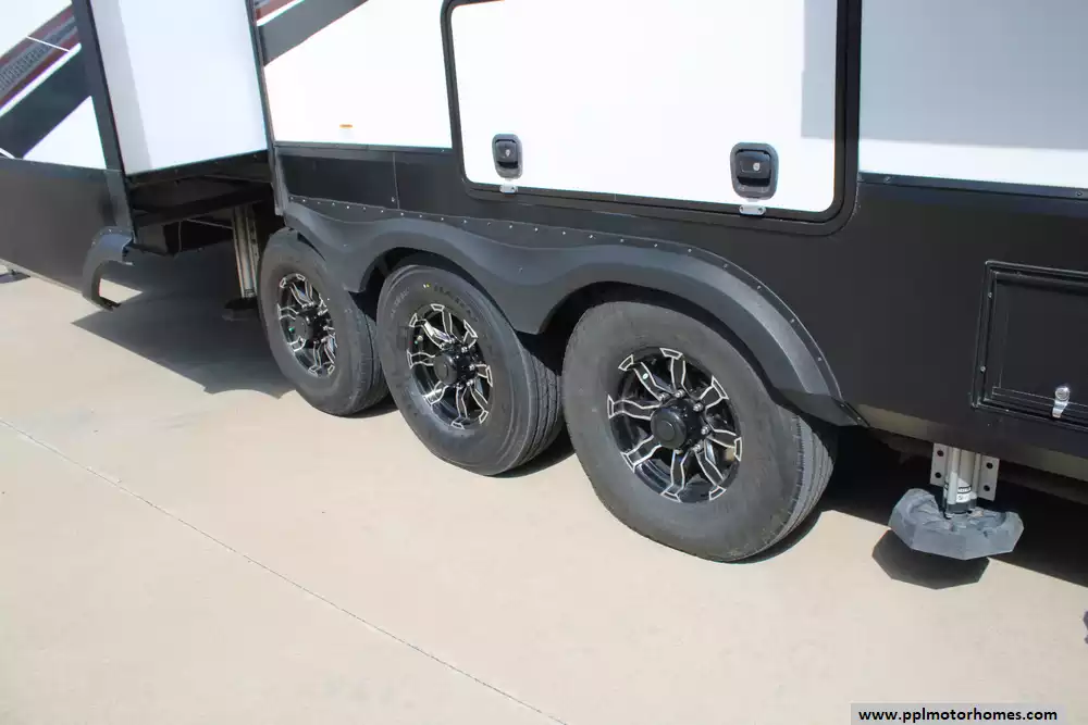 The rear garage area can carry gear and toys and includes robust features like an enclosed fuel station and heavy-duty tie-downs, while the interior includes amenities such as LED TVs, fireplace, stacked washer/dryer, solid surface countertops, and Weather-Tek four-season insulation for year-round comfort. With generous fresh and waste water capacities, multiple air conditioners, and optional outdoor kitchen and entertainment setups, the Momentum 376TH balances home-like comforts with rugged capability for extended trips and playtime. Other highlights include frameless tinted windows, heated holding tanks, rear camera prep, Lippert One Control, and the convenient MORryde sliding pull-out storage trays. Let the memories begin!!