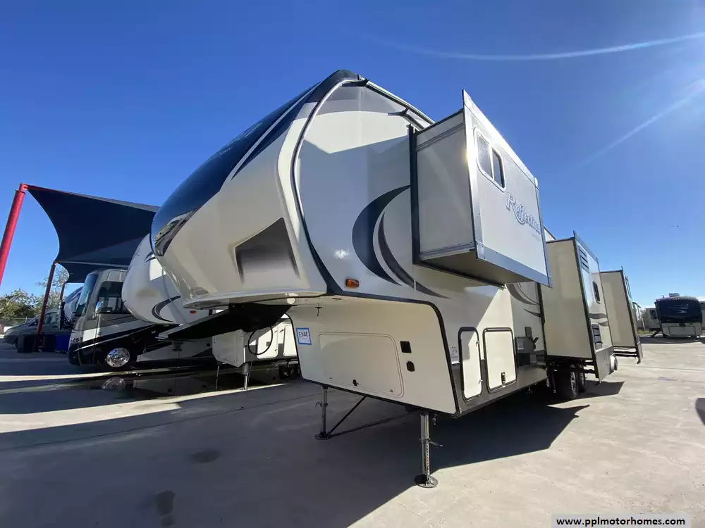 This 2019 Reflection 311BHS has a Electric Self Leveling Landing Gear, 4 Slide-outs, 2 Ducted Air Conditioners, 4 Door Gas/12v Dometic Refrigerator, Automatic Main Awning, Outside Speakers, TV, DVD Player, Outdoor Grill, Outdoor Kitchen, Outside Shower, Fireplace, Convection Microwave, 3 Burner Range, Oven