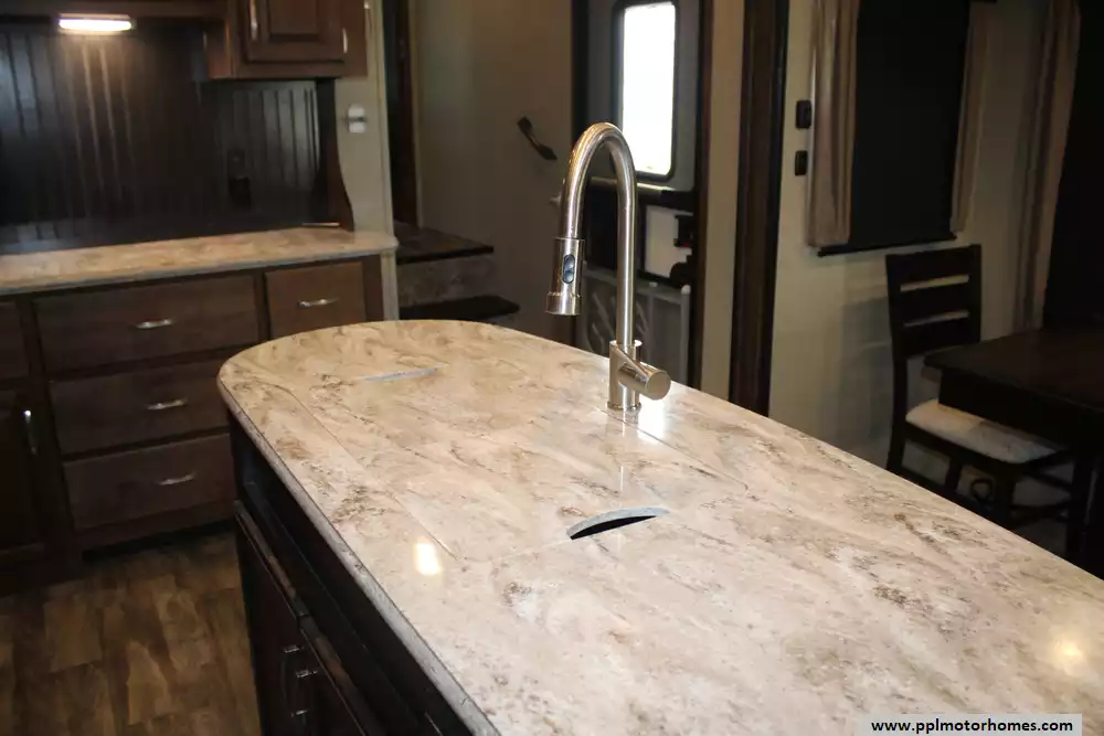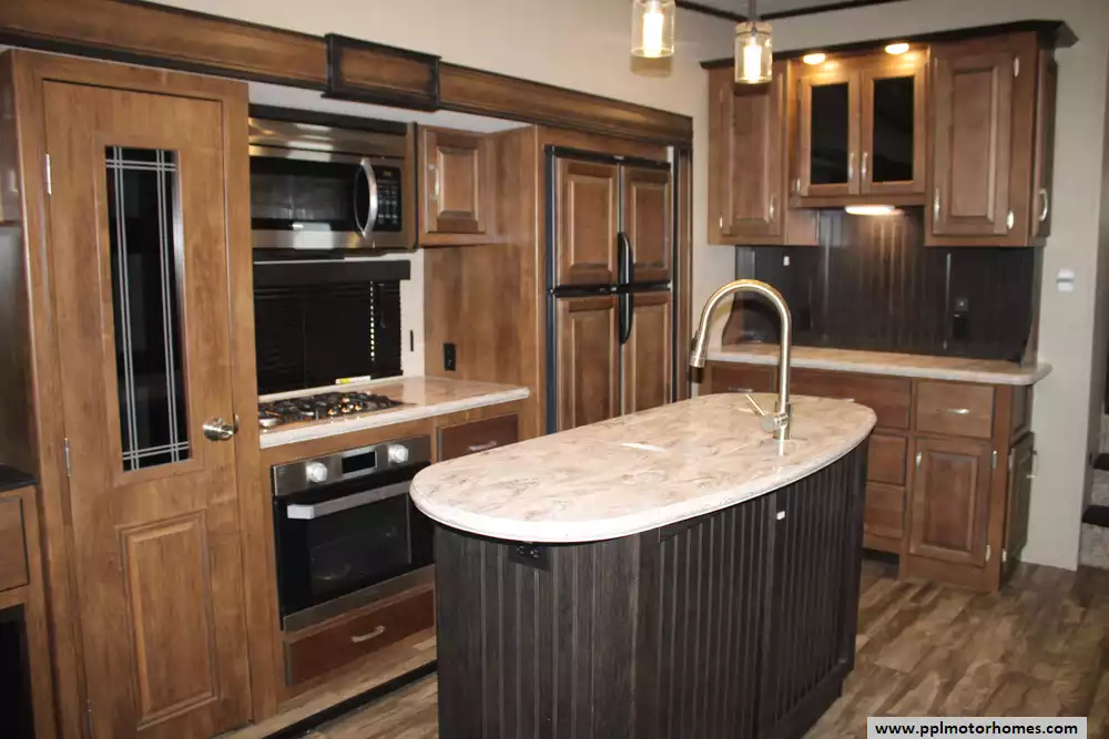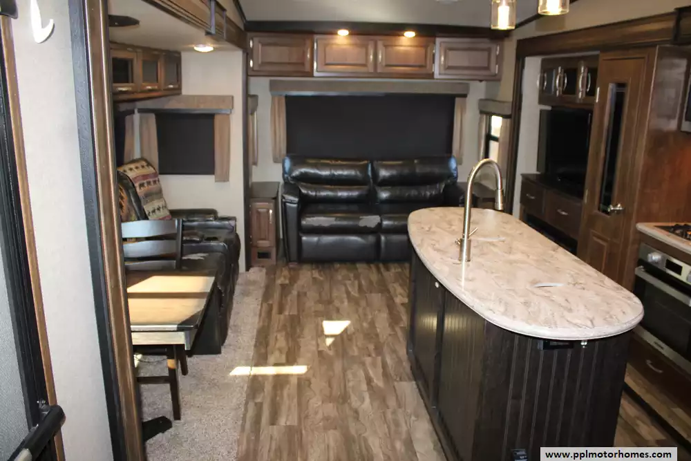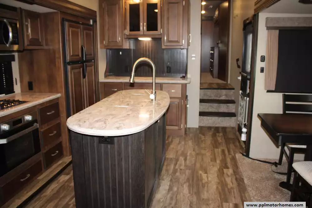 The 2019 Grand Design Reflection 337RLS is a sophisticated fifth-wheel that balances spacious comfort with towability, stretching about 35' 7" in length with three slide-outs to expand the interior footprint. With a dry weight in the range of 10,570 lbs and a Gross Vehicle Weight Rating around 13,995 lbs, it's engineered to be drivable with a capable heavy-duty truck. It offers a well-appointed interior: gourmet kitchen with center island, solid wood cabinets, panoramic windows, a rear living area with recliners, entertainment center and fireplace, and a master suite up front with a queen sleep-number bed and generous storage. The utility systems are robust, 60-gallon fresh water capacity, 87 gallons gray, 47 gallons black, a 15,000 BTU air conditioner, and 35,000 BTU furnace, making it suitable for a variety of climates. With its quality construction, thoughtful features, and comfortable layout, the 337RLS is a strong option for travelers wanting a roomy, full-amenity RV without overextending their tow limits.