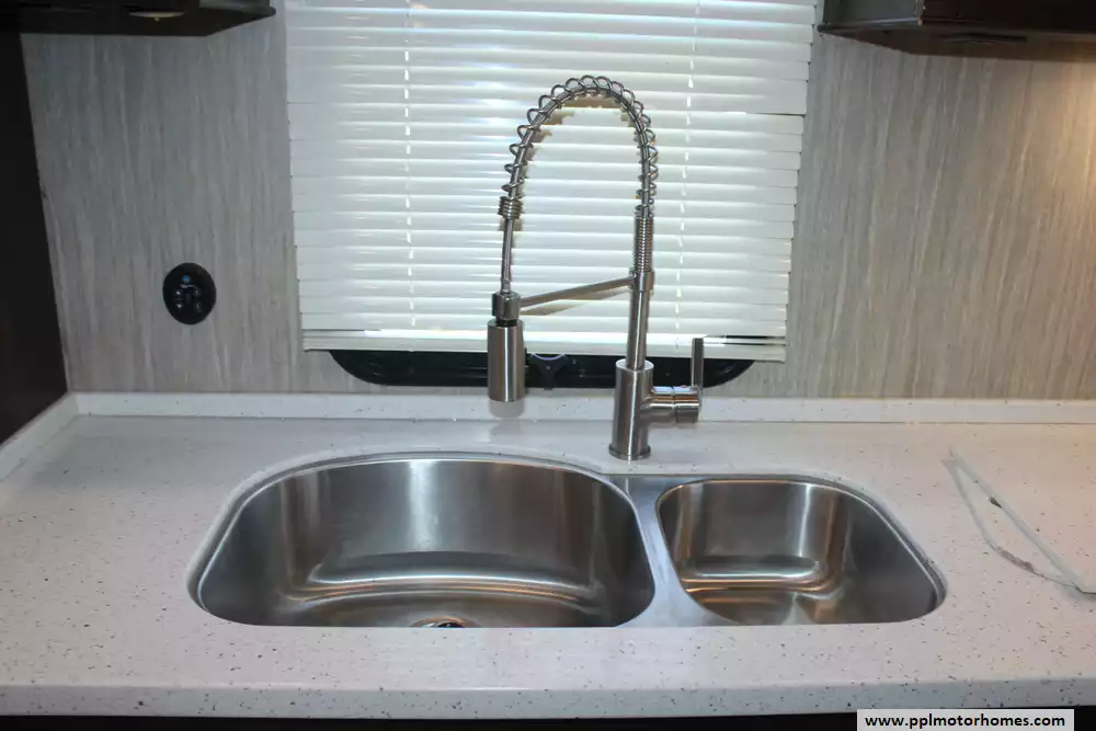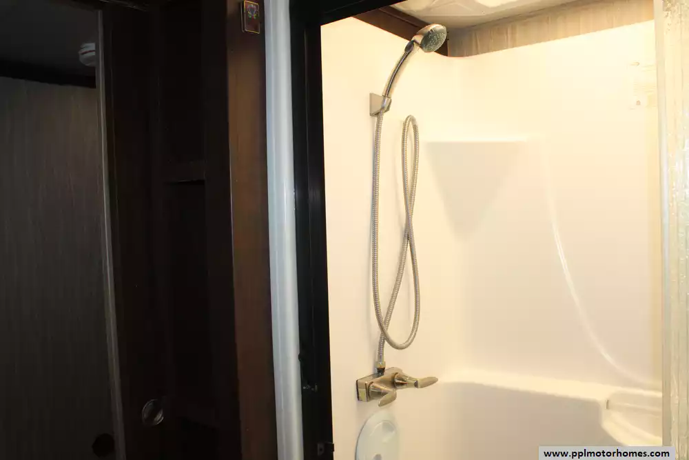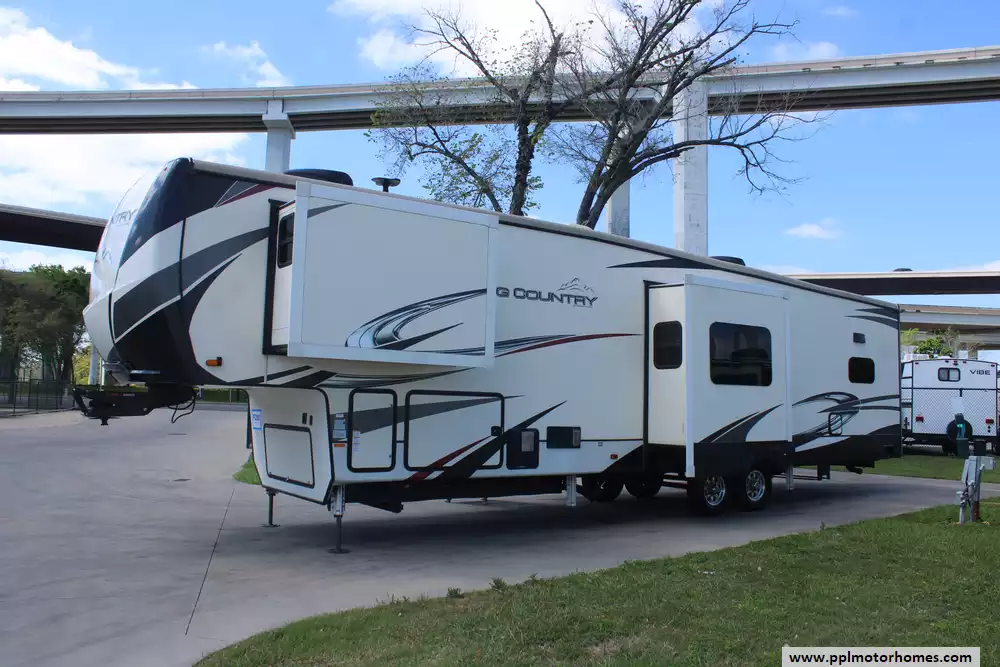 Specs: Length: 41.2 ft., Width: 8 ft., Height: 13.25 ft., Payload Capacity: 3,143 lbs., Total Fresh Water Tank Capacity: 65 gal., Total Grey Tank Capacity: 90 gal., Total Black Water Tank Capacity: 90 gal., Total Propane Tank Capacity: 60 lbs.