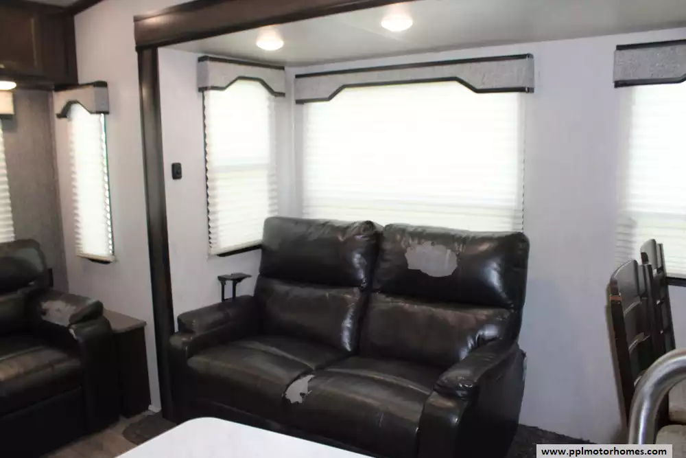 This 2019 Pioneer by Heartland 290 is a well-balanced mid-sized fifth wheel: comfortable living with 3 slideouts, ample tank capacity, and a residential-style layout ideal for couples or small families. Features Include...Electric Landing Gear, 3 Slide-outs, 1 Non-Ducted And 1 Ducted Air Conditioner, Double Door 110v Refrigerator, Automatic Main Awning, Outside Speakers, TV, Outdoor Kitchen, Outside Shower, Fireplace, Microwave, 3 Burner Range, and Oven.
