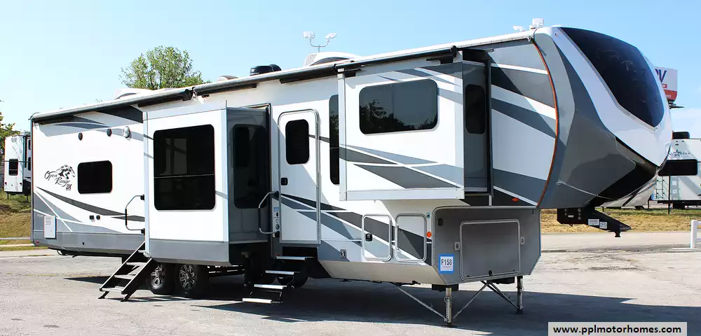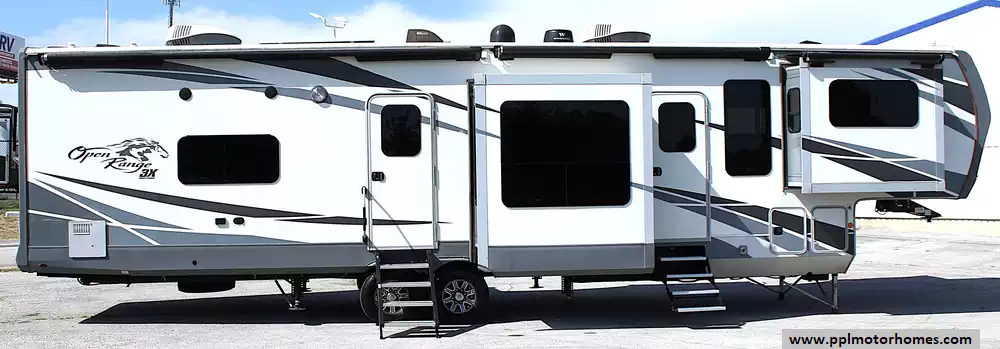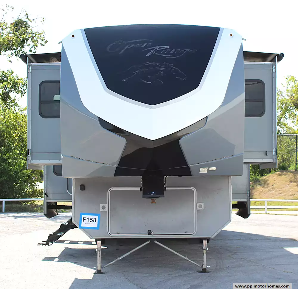 Built for travelers who want it all, the 387RBS combines space, style, and practicality. With a dry weight of 13,320 lbs and a GVWR of 16,470 lbs, it tows best with a one-ton dually pickup or other heavy-duty truck equipped for fifth wheel towing. Once parked, the auto-leveling system, dual power awnings, and insulated underbelly make setting up simple and stress-free. Whether you're full-timing, vacationing, or hosting weekend getaways, this Open Range delivers the comfort of home with the freedom of the road.