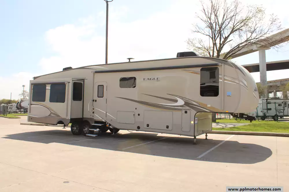 This 2019 Jayco Eagle 355MBQS is a luxurious fifth-wheel RV designed to elevate your camping experience to new heights.With its spacious layout and premium amenities, this model offers comfort and convenience for families or groups of travelers seeking adventure without sacrificing the comforts of home.Comforts Include...Electric Landing Gear, 4 Slide-outs, 2 Ducted Air Conditioners, Side by Side 110v Residential Whirlpool Refrigerator, In-Fridge Ice Maker, Automatic Main Awning, Washer/Dryer Connections, Outside Speakers, TV, Outdoor Kitchen, Outside Shower, Fireplace, Microwave, 3 Burner Range,and Oven.It combines luxury and functionality to create the ultimate home away from home. Whether you're traveling solo, with family, or with friends, this fifth-wheel RV offers the perfect blend of comfort, style, and adventure for unforgettable camping experiences.