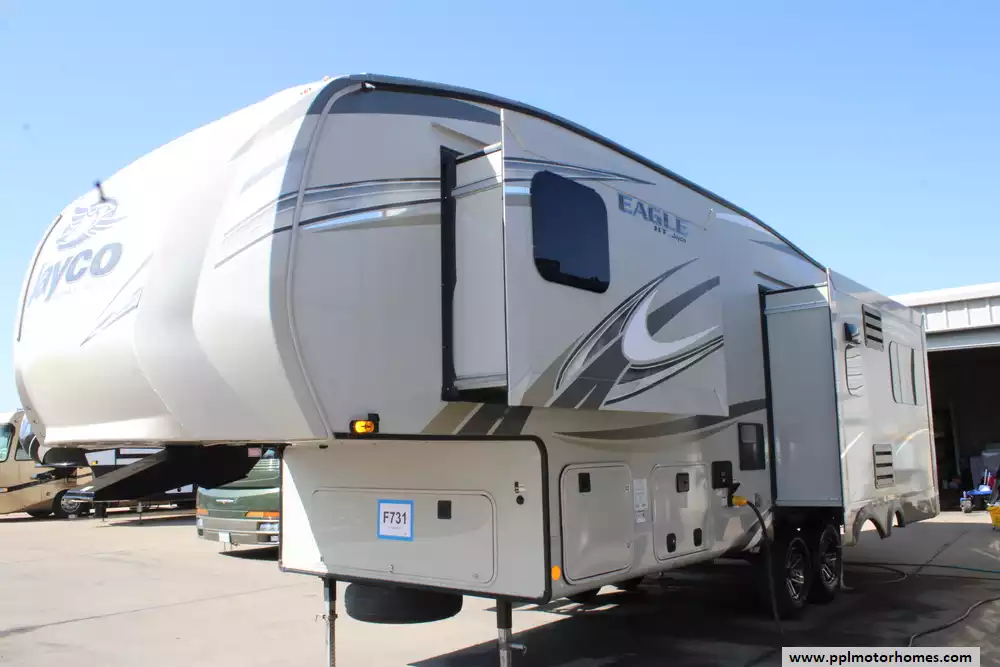 Enjoy Your Adventures In This Well-Kept 2019 Jayco Eagle HT 27.5 RLTS! The Seller Recently Had The Roof Treated With Rhino Linings Roof Coating. Other Highlights Of This Lightweight Fifth Wheel Include... Electric Landing Gear, "Climate Shield", 3 Slide-Outs, 2 Roof-Ducted Air Conditioners, Rear And Side Cameras (Includes Monitor), Tinted Frameless Windows, Rooftop And Side Mount Solar Prep, Double Door Gas/110v/12v Dometic Refrigerator, Automatic Main Awning, Outside Speakers, TV, DVD Player, Outside Shower, Fireplace, Microwave, 3 Burner Range, Oven, And More! Ask About PPL's Financing Options. This Eagle Is Eligible For Protection. Your Adventure Awaits...