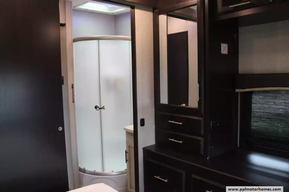 (Floor plan is NOT drawn to scale. Length of vehicle is approximate. Buyer is responsible for verifying actual length. PPL Motor Homes compiled this list of features, specifications, equipment and options as a guide. No representation or warranties, either express or implied, are made as to the accuracy of the information herein. Please verify for yourself all items listed before purchase.)