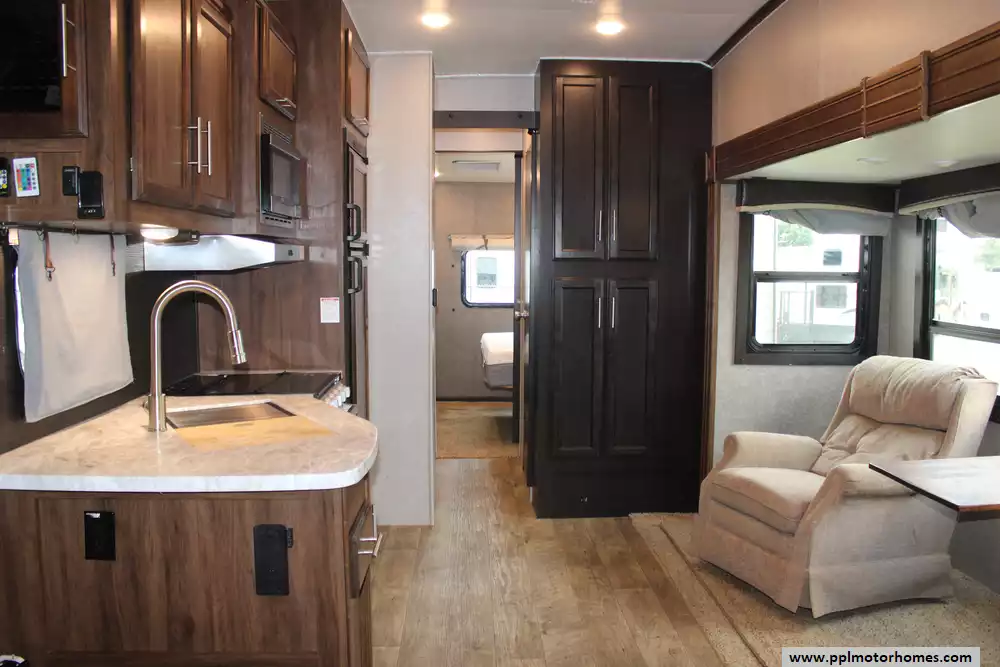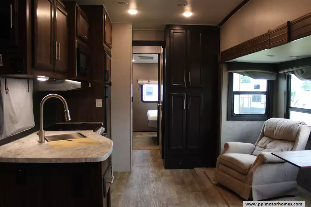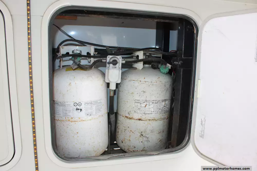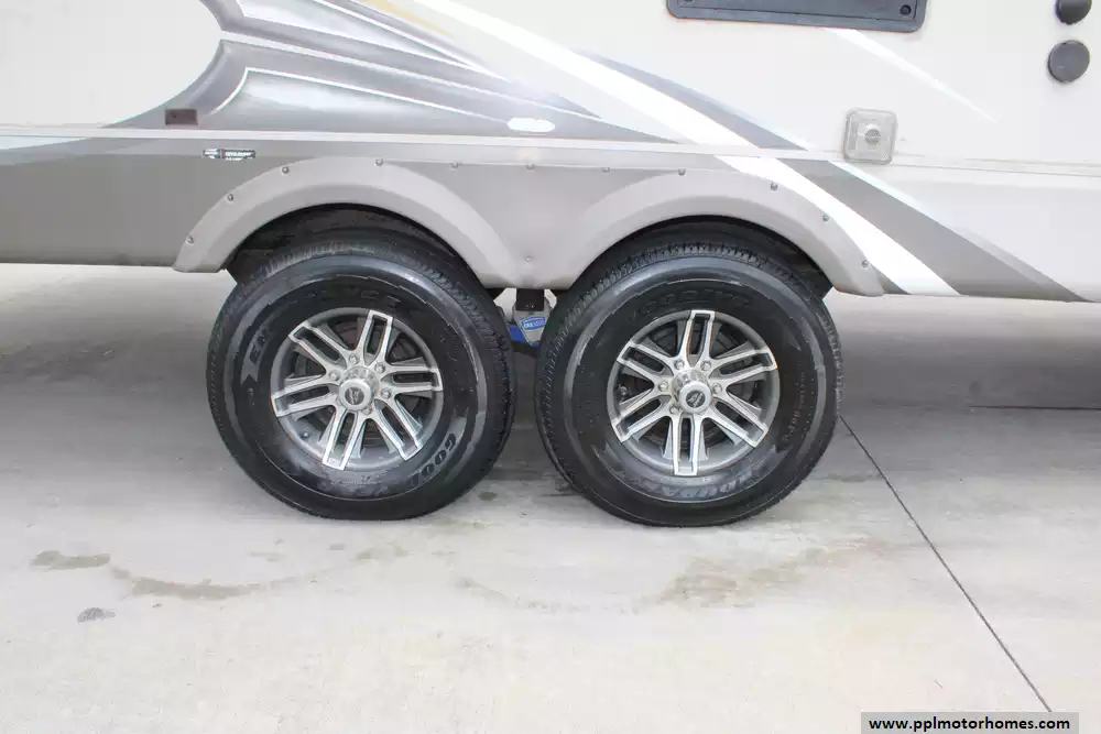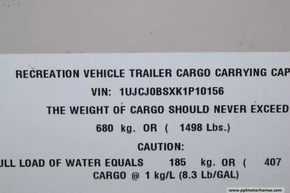 Specs: Length: 34.4 ft., Width: 8 ft., Height: 12.71 ft., Interior Height: 7.92 ft. Payload Capacity: 1,860 lbs., Total Fresh Water Tank Capacity: 43 gal., Total Gray Water Tank Capacity: 32.5 gal., Total Black Water Tank Capacity: 32.5 gal., Number of Propane Tanks: 2, Total Propane Tank Capacity: 60 lbs.