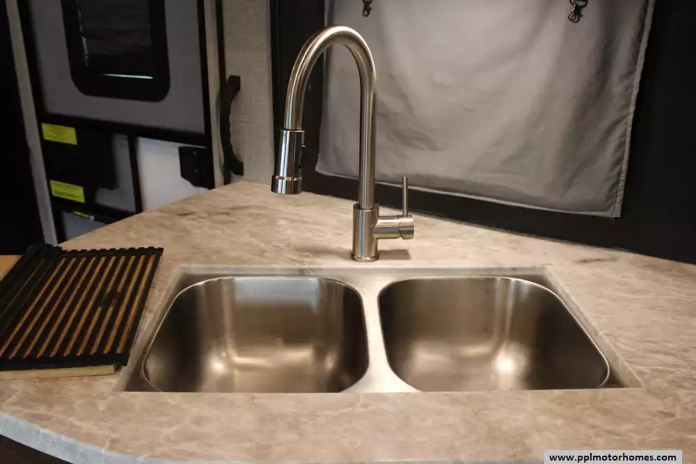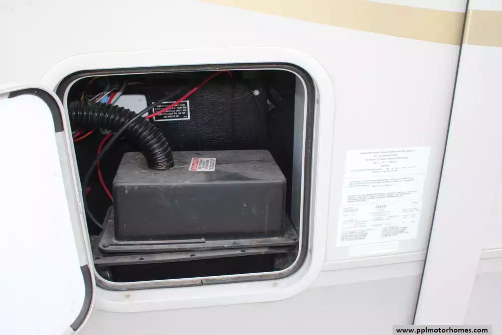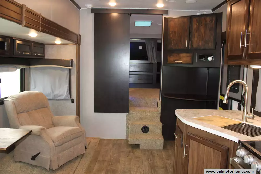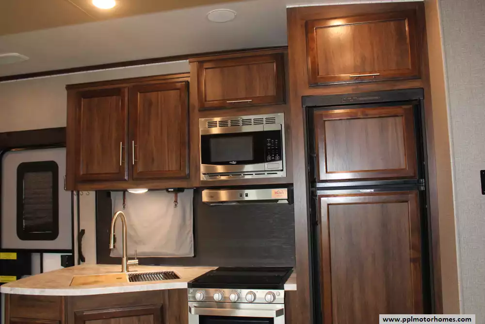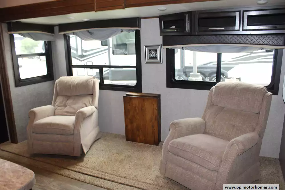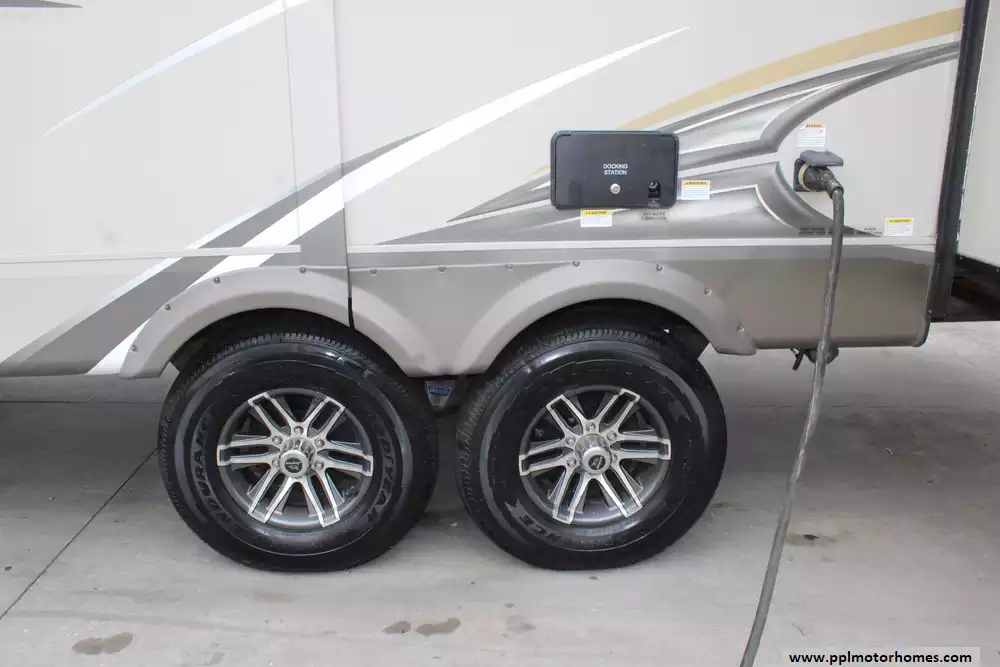Specs: Length: 34.4 ft., Width: 8 ft., Height: 12.71 ft., Interior Height: 7.92 ft. Payload Capacity: 1,860 lbs., Total Fresh Water Tank Capacity: 43 gal., Total Gray Water Tank Capacity: 32.5 gal., Total Black Water Tank Capacity: 32.5 gal., Number of Propane Tanks: 2, Total Propane Tank Capacity: 60 lbs.